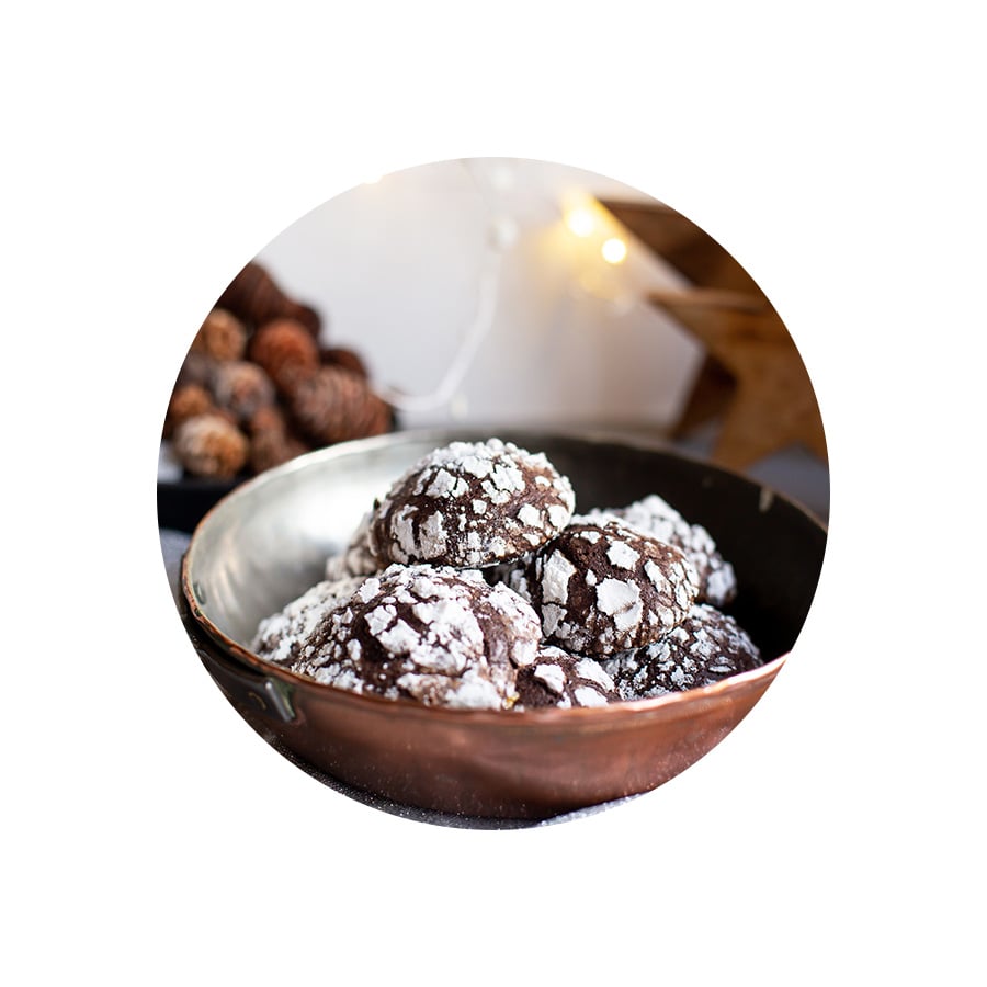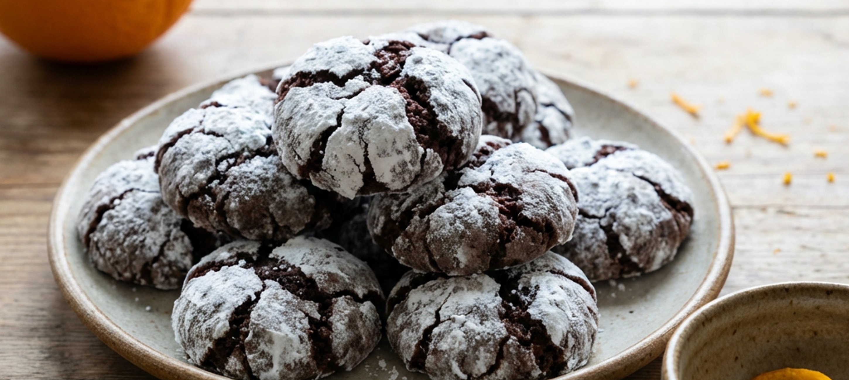 - 2Mouku prosejeme s kakaem, práškem do pečiva a 70 g moučkového cukru. Přidáme jedno rozšlehané vejce, máslo, pomerančové vločky nebo kůru a likér nebo šťávu. Vypracujeme těsto, které je hodně lepivé. Zabalíme ho do potravinářské fólie a necháme 2 hodiny vychladit v ledničce.