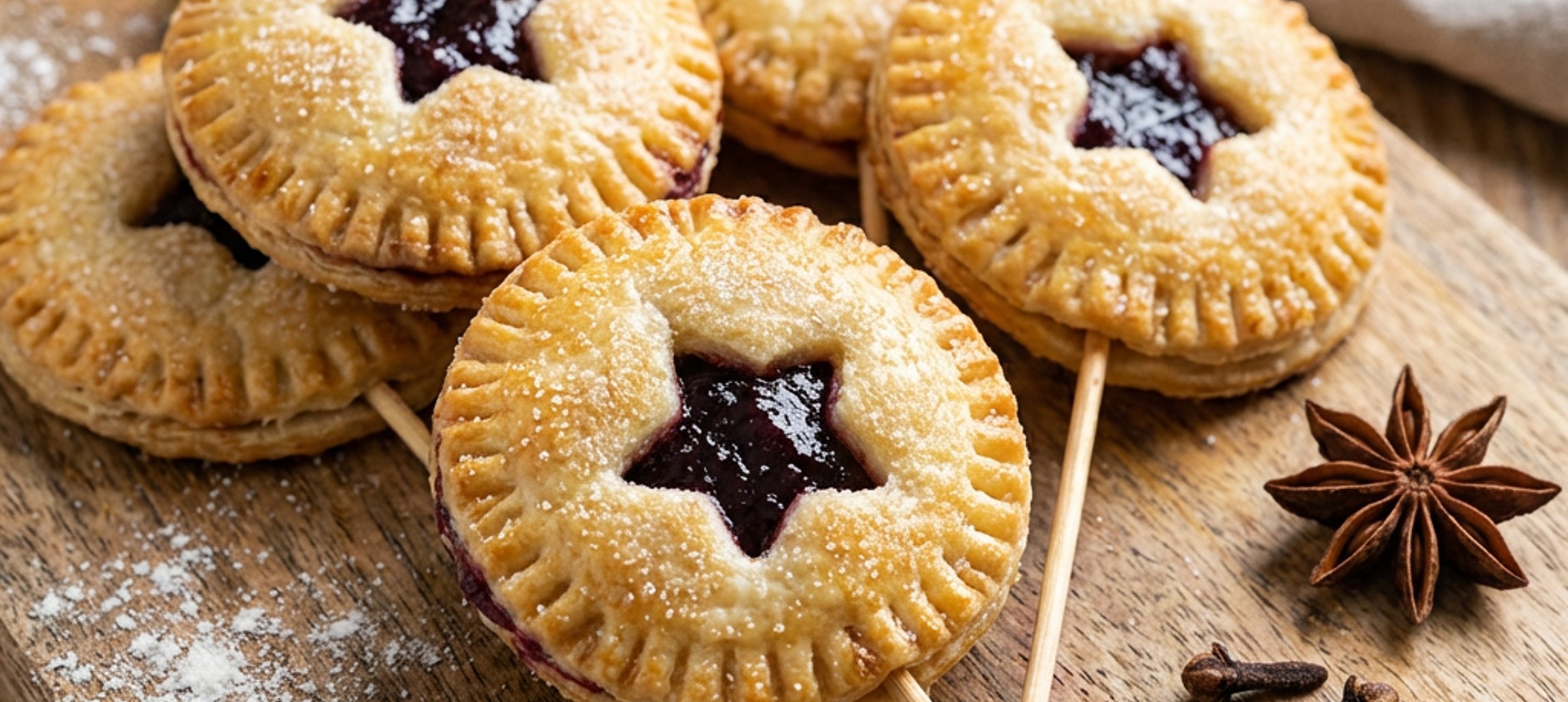 - 1Připravené těsto rozválíme na tenký plát, vykrajujeme z něj kolečka nebo jiné tvary o průměru 6 cm. U poloviny koleček vykrojíme ozdobný střed. Na spodní plné kolečko položíme kus špejle tak, aby její konec dosahoval do středu kolečka a lehce ji zatlačíme do těsta. Na kolečko položíme do jeho středu necelou lžičku povidel a ty přikryjeme kolečkem s vykrojeným středem. Dobře přimáčkneme okraje, špejlí nebo párátkem vytvoříme ozdobný okraj a koláček položíme na plech vyložený pečicím papírem. Potřeme mlékem a posypeme troškou krupicového cukru.