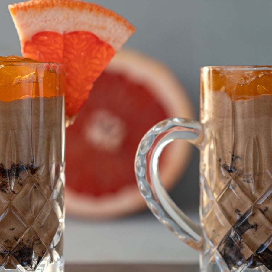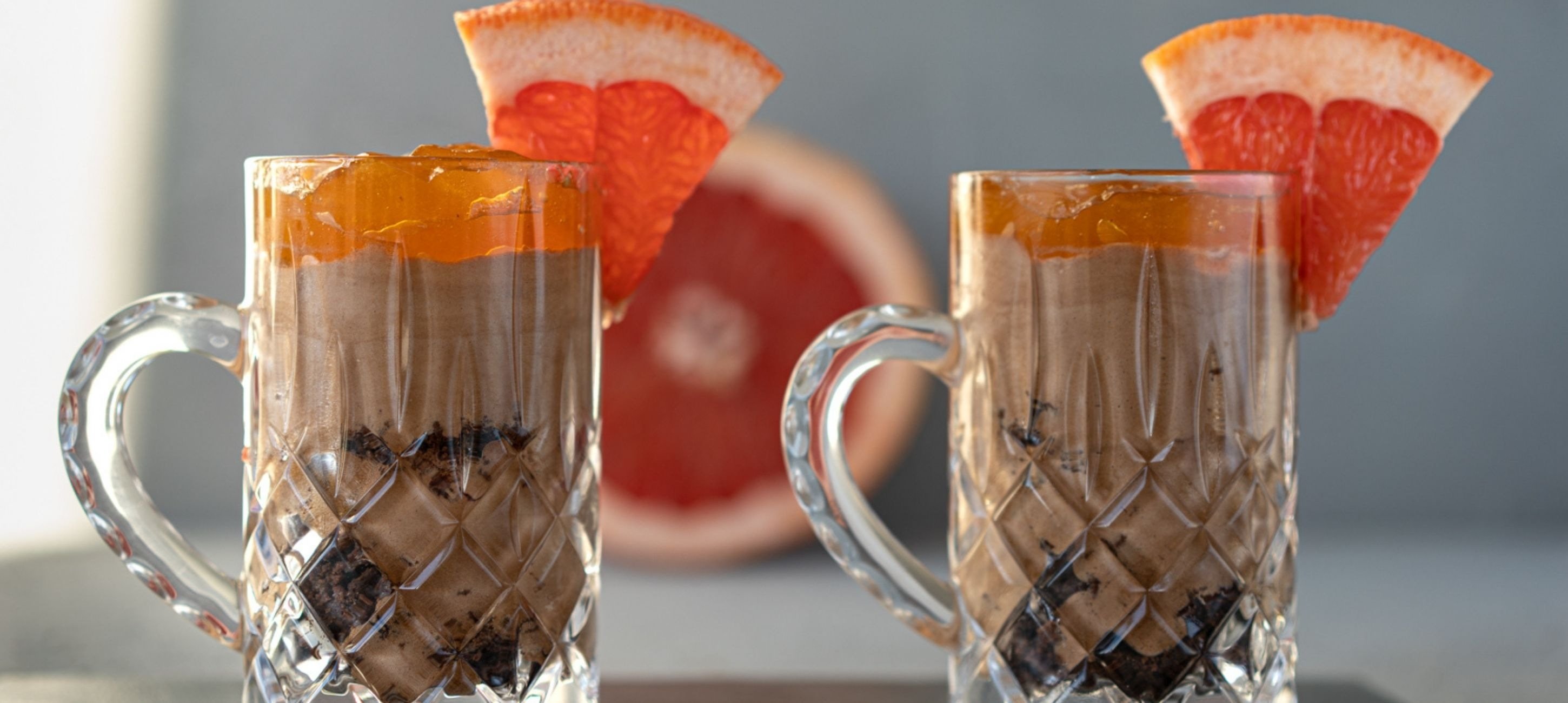 - 1Na dno skleniček dejte trochu rozdrobených sušenek. Nalijte (nandejte) čerstvě dokončený krém do poloviny skleničky. Do něj ponořte několik kousků grepové dužiny a celý postup opakujte. Nakonec nahoru položte kousky grepu a nakrájené želé podle chuti (želé je sice velmi fotogenické, ale poměrně výrazné, doporučuji tedy použít výrazně méně želé, než je na fotkách skleniček).