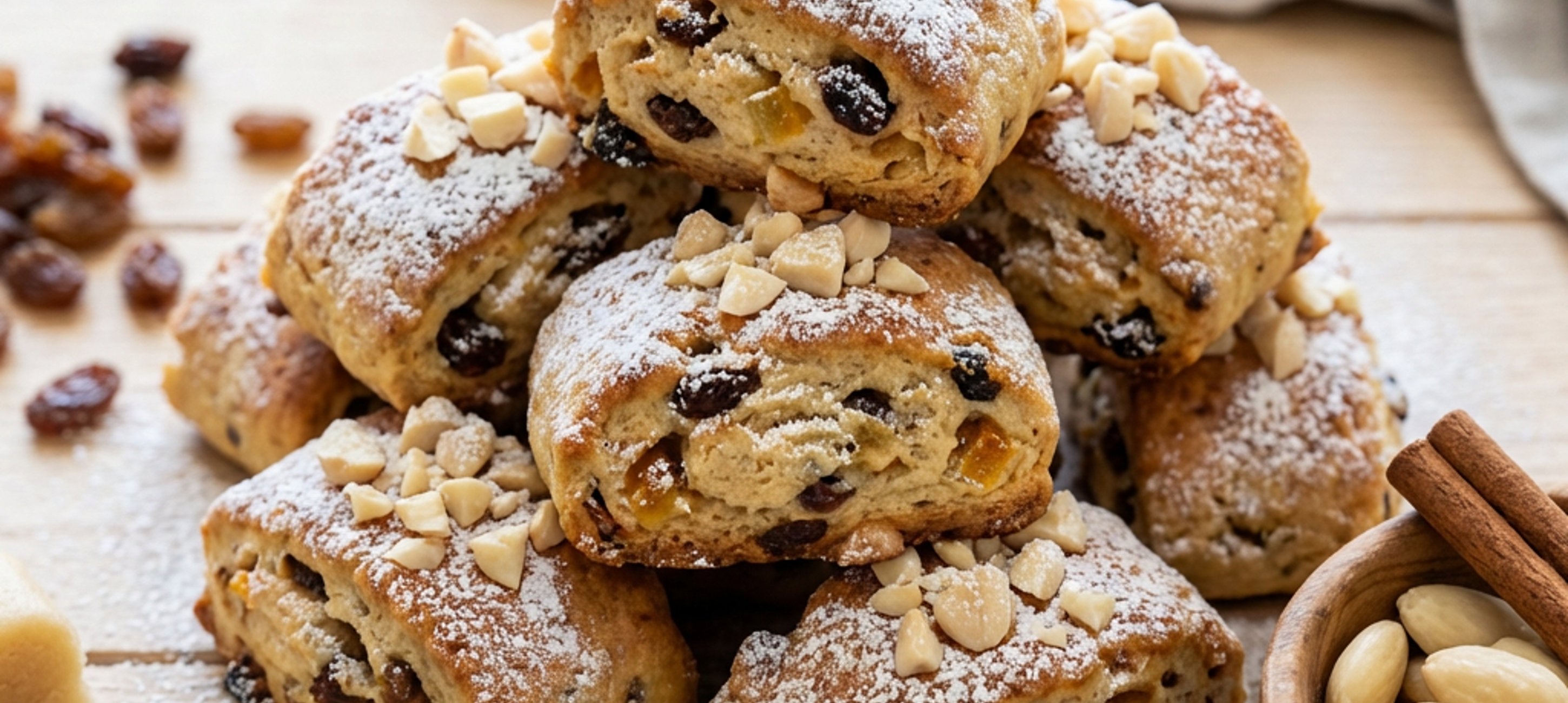 - 6Pečeme 12 až 15 minut v troubě vyhřáté na 180°C s ventilátorem. Během pečení rozpustíme máslo a ihned po upečení jím potřeme mini štóly. Necháme vychladnout a poprášíme moučkovým cukrem.
