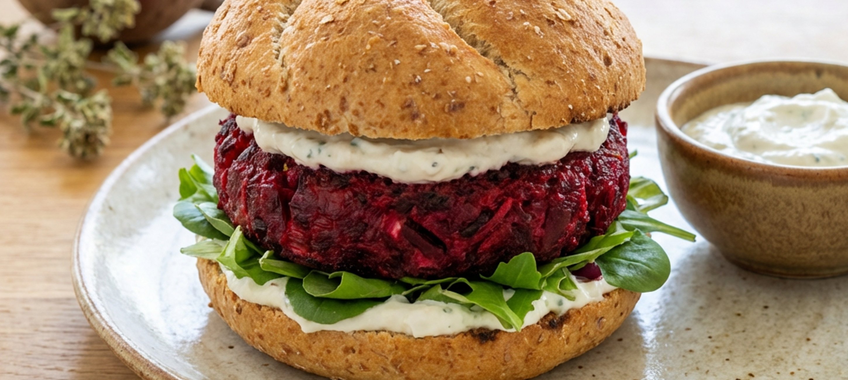 - 1Uvařenou červenou řepu si nastrouhejte najemno a v míse smíchejte s mletým masem, vejcem, majoránkou, směs osolte a opepřete. Z hmoty tvarujte burgery, které z obou stran opečte na pánvi (cca 3 minuty z každé strany) a poté dejte dopéct na 10 minut do trouby.