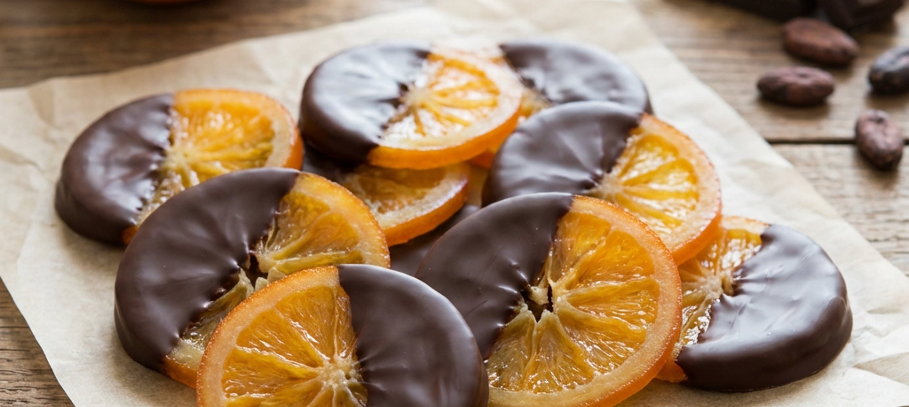 - 5Nakonec polovinu každého kousku pomeranče namočte do rozpuštěné čokolády smíchané s olejem a nechte na papíru na pečení ztuhnout. Uschovávejte uzavřené a v chladu.