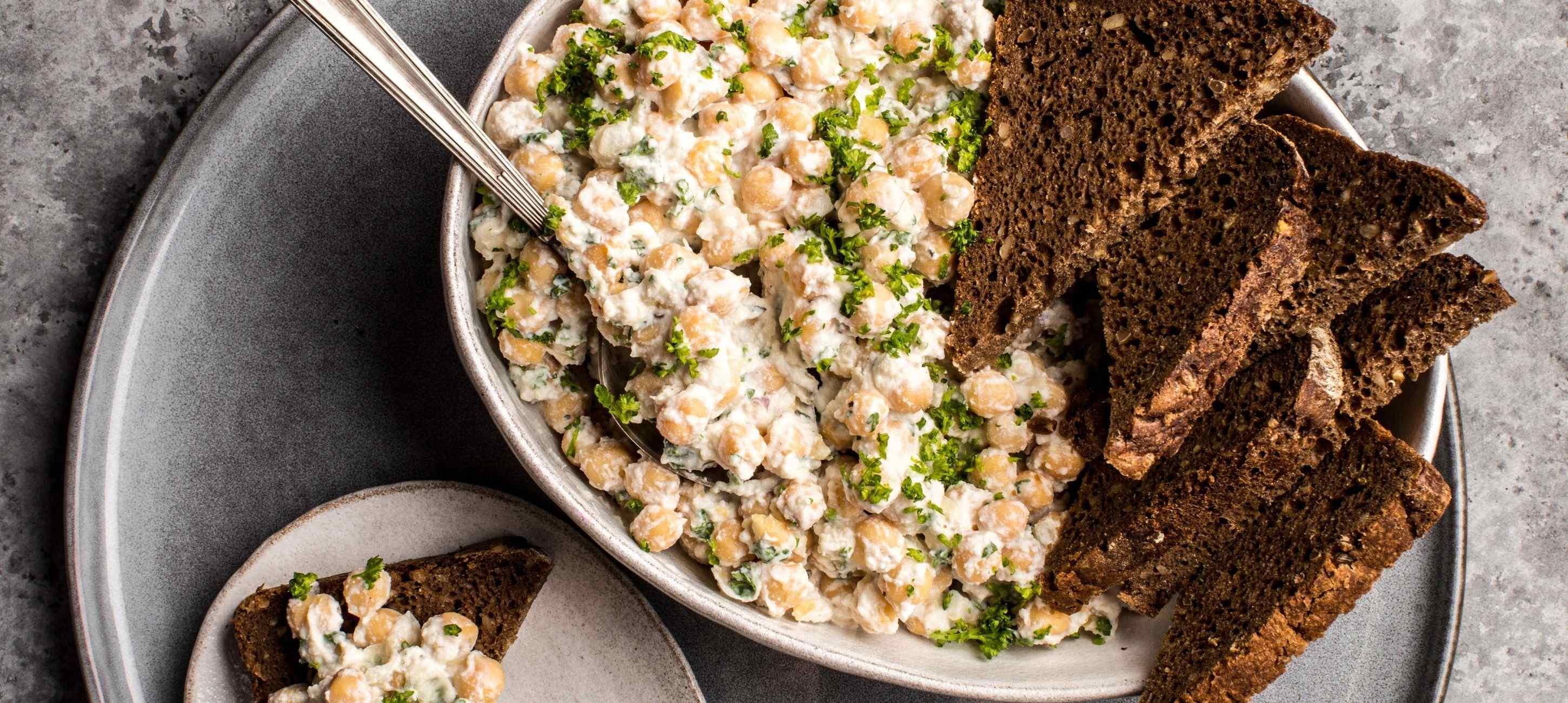 - 1Drain the water from the chickpeas. Grate the shallot and feta cheese finely and add both to the chickpeas.