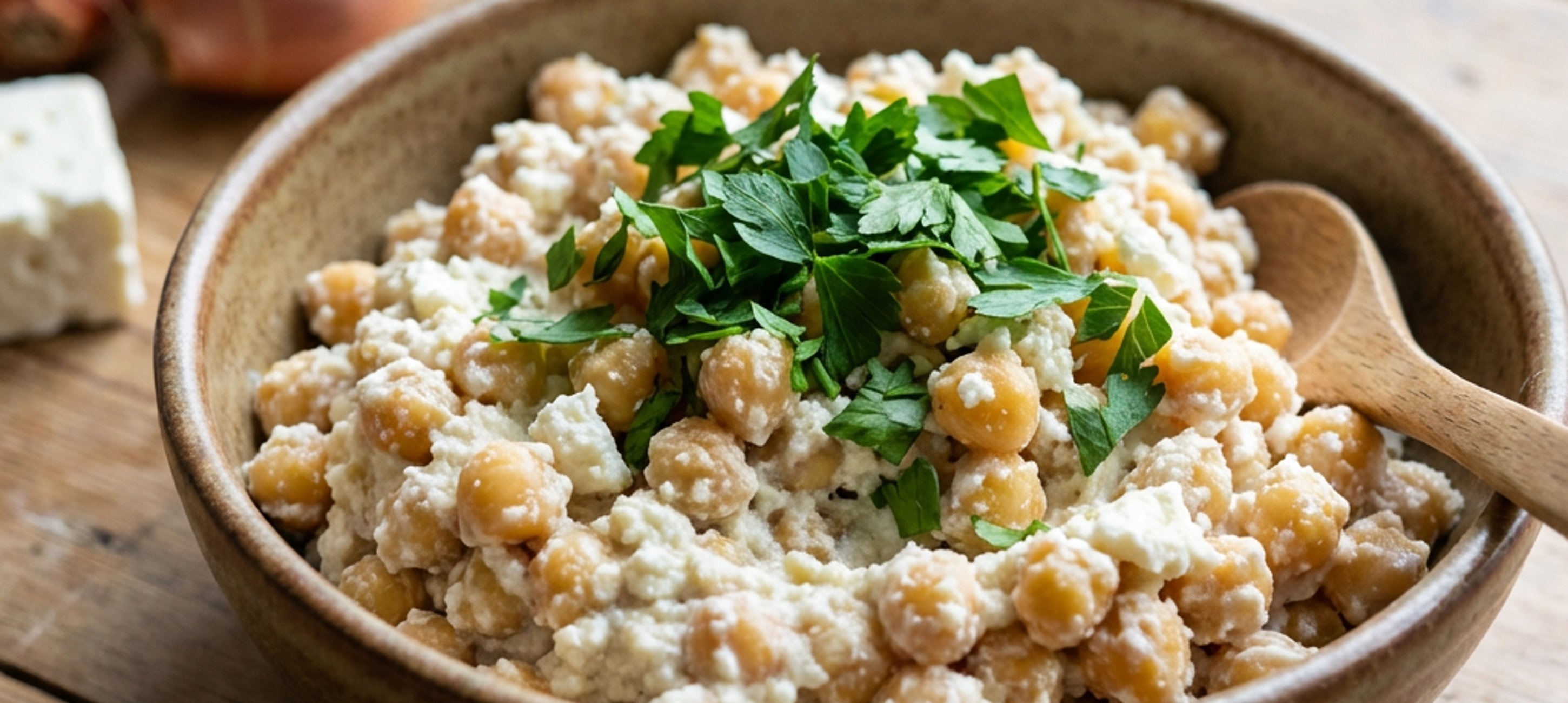 - 1Z cizrny slijte vodu. Šalotku a sýr feta si nastrouhejte najemno a obojí přidejte k cizrně.
