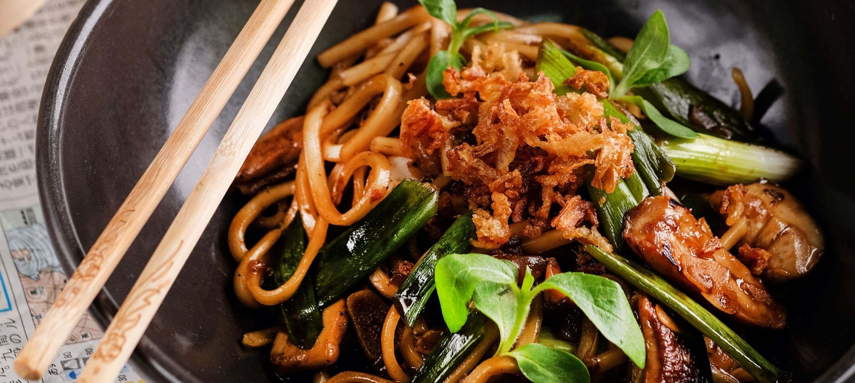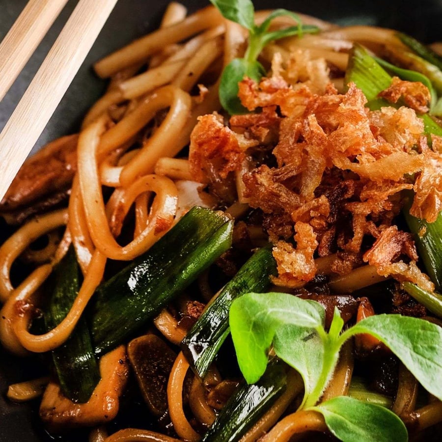 - 2Meanwhile, cook the udon noodles for 3 minutes, rinse and drain. (Tip: cook in unsalted water, using ten times the amount of water compared to noodles, and ensure a vigorous boil)