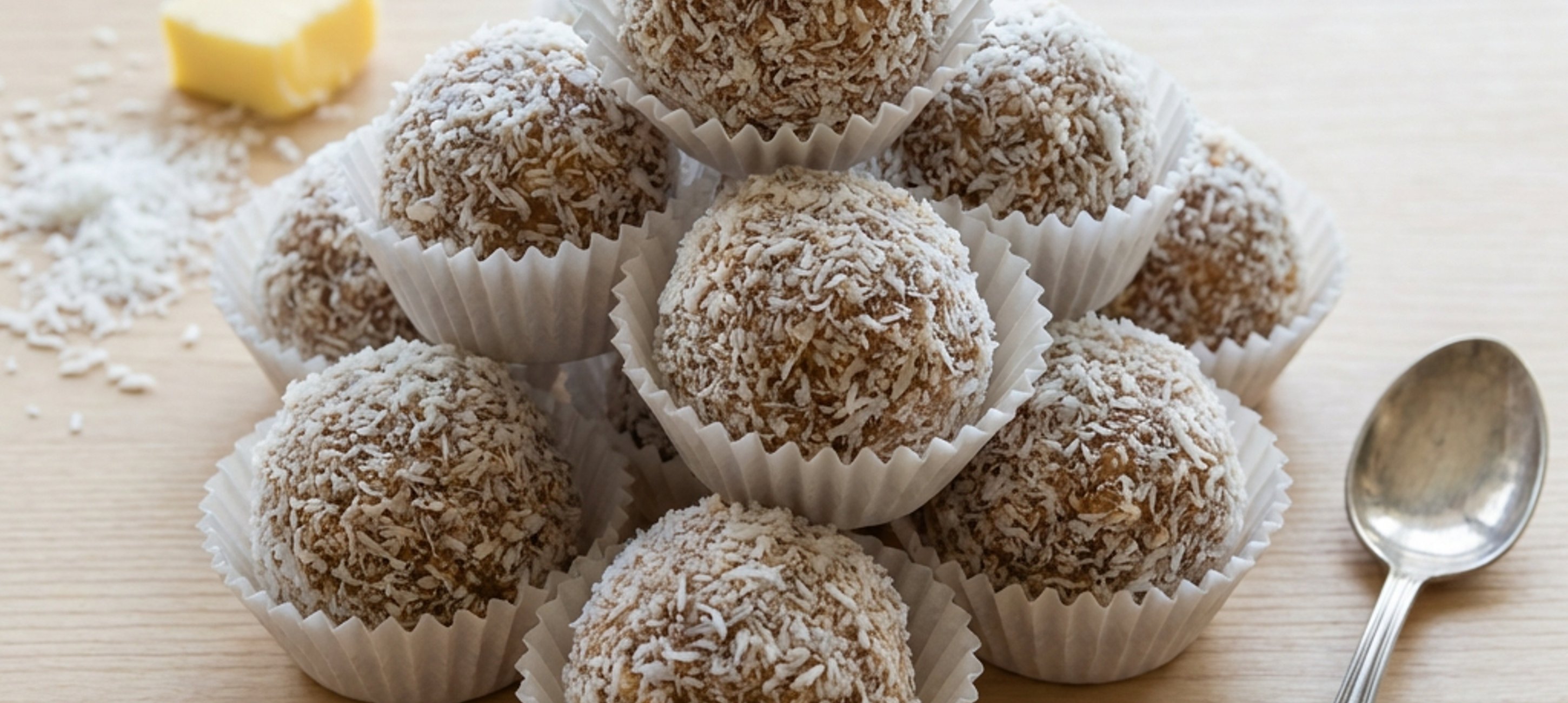- 3Rozložte dva papírové ubrousky na sebe a nasypte na ně kokos určený pro obalování. Lžičkou odkrajujte kousky ztuhlé kokosové hmoty, konečky prstů je trochu vytvarujte do podoby kuliček, byť ne zcela dokonalých, a vhoďte do připraveného kokosu. Obalte a teprve nyní dotvarujte konečnou podobu kuliček a případně ještě jednou vyválejte v kokosu. Odkládejte do košíčků, uchovávejte v chladu.