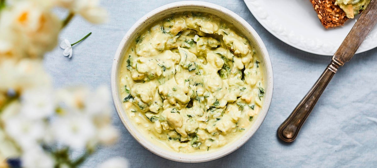 - 2Remove the pit from the avocado, peel it, and place it in the bowl. Then add Greek yogurt and lemon juice and mix everything with a fork. While mixing, also mash the avocado with the fork.