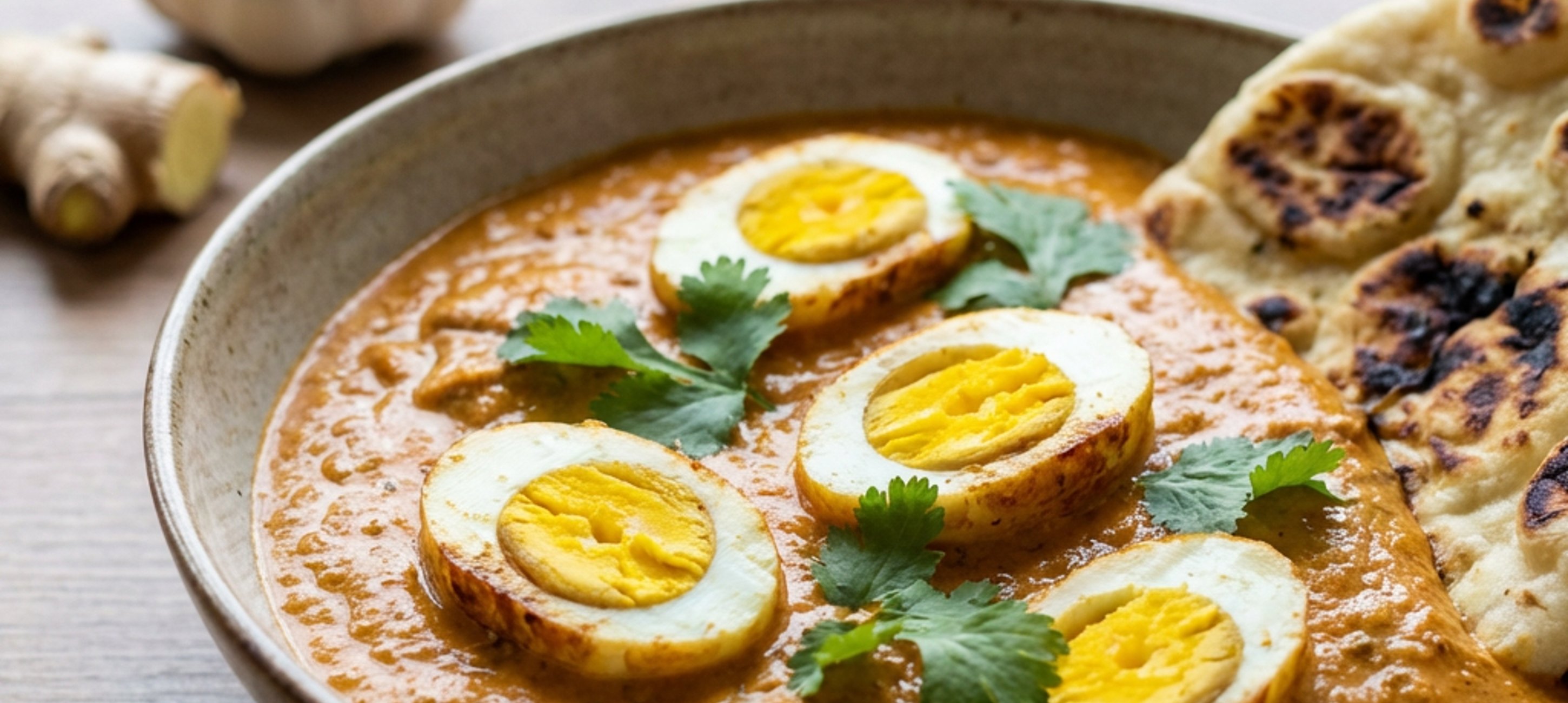 - 5Na vedlejší pánvi rozpálíme olej a přidáme 10 g tikka pasty spolu s vajíčky na tvrdo, uvařenými a oloupanými. Vaříme dokud se na vejcích nevytvoří křupavá vrstva (dokud bílek na povrchu vajíček jemně nezhnědne).