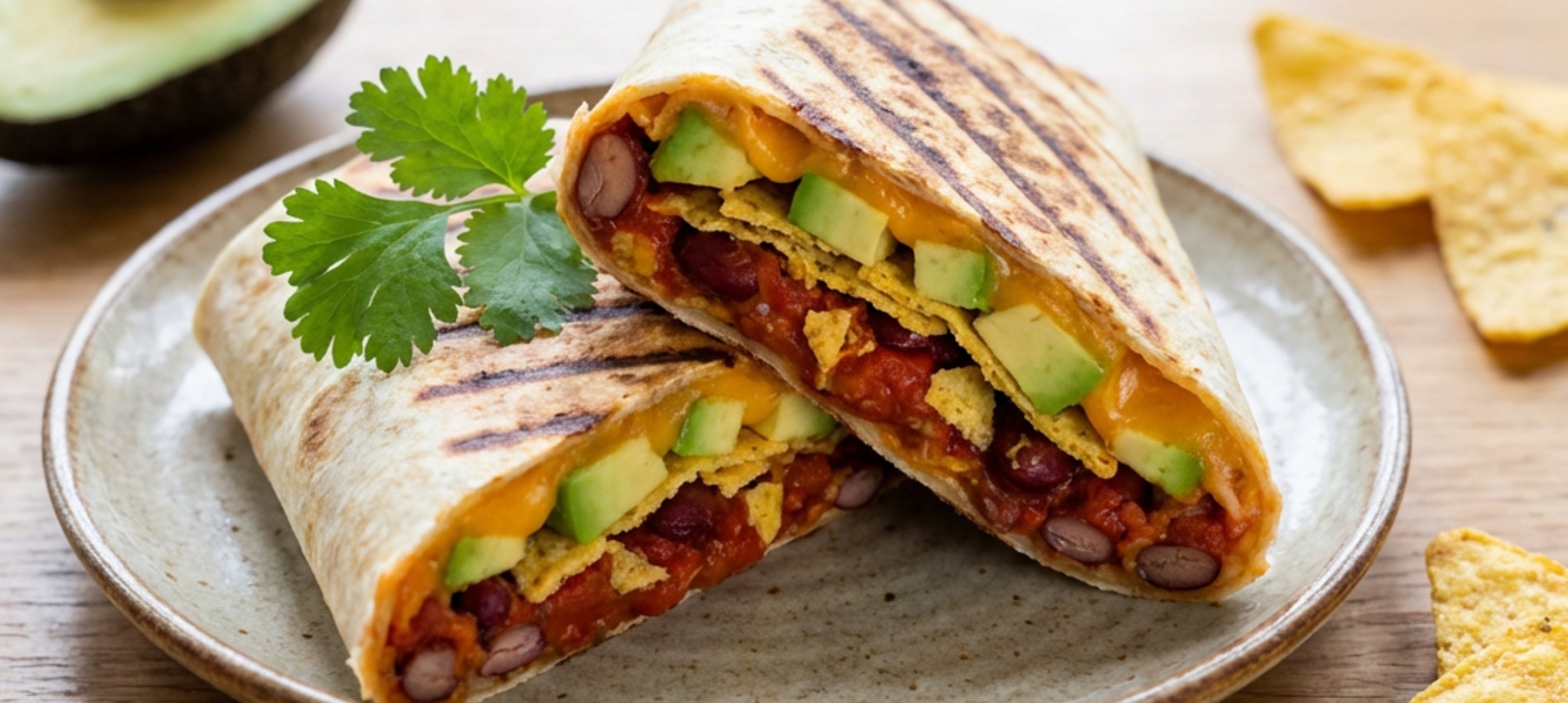 - 5Nyní můžete začít wrap balit. Nejdříve přiložte část se sýrem na fazole, poté obě části přeložte na nachos a wrap dokončete přeložením na část s avokádem a koriandrem. Pro větší názornost se podívejte na video výše.