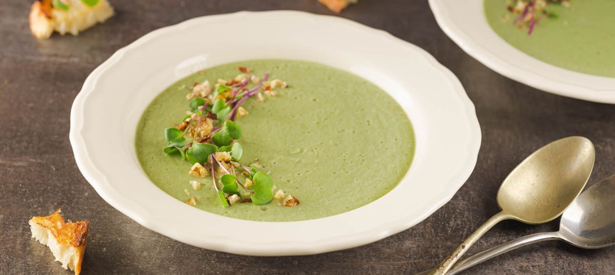 - 2Pour the soup into a blender and blend until smooth. Season with salt.