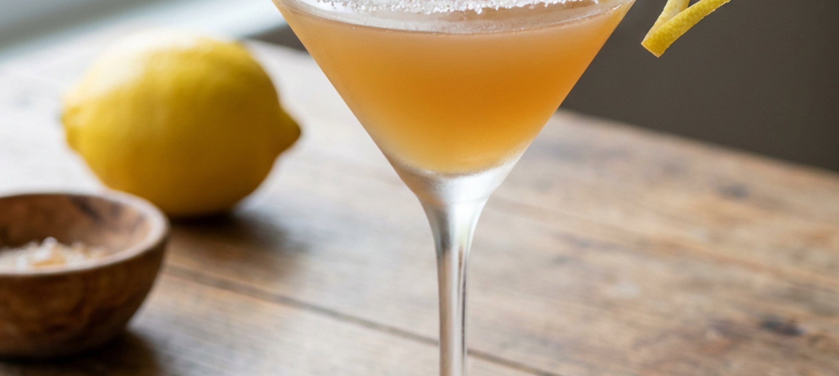 - 1Odšťavte citrón a zbylou dužinou se slupkou navlhčete okraje skleničky (ideálně na martini). Navlhčenou část skleniček obalte v krystalovém cukru.
