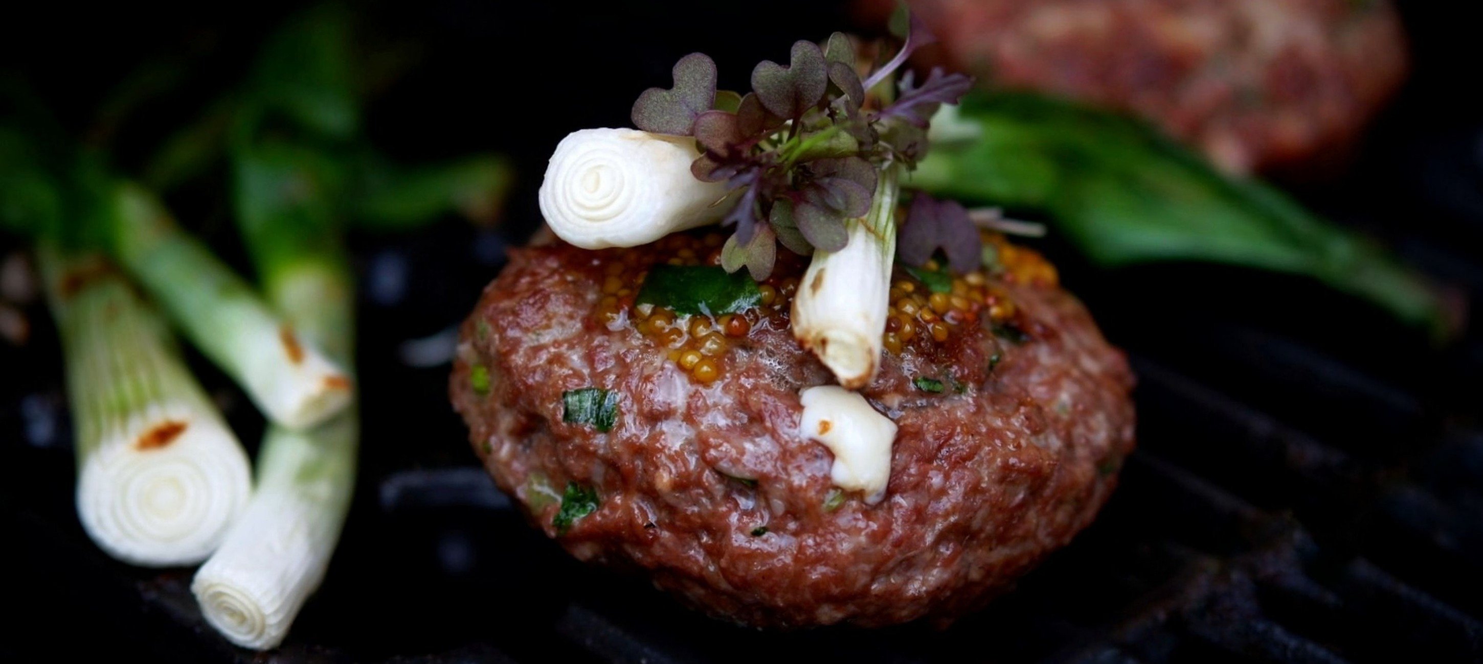 - 5Serve the meat coated with the mustard mixture and grilled spring onions. The overall taste is wonderfully complemented by young mustard sprouts. As a side dish, toasted bread or baked potatoes are suitable.