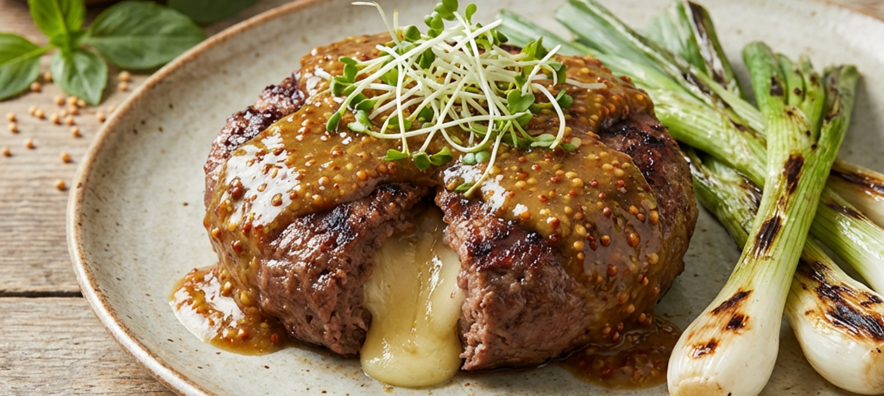 - 5Maso podáváme potřené hořčičnou směsí a grilovanými jarními cibulkami. Celkovou chuť skvěle podtrhnou mladé klíčky pikantní hořčice. Jako příloha se hodí rozpečené pečivo, nebo pečené brambory.