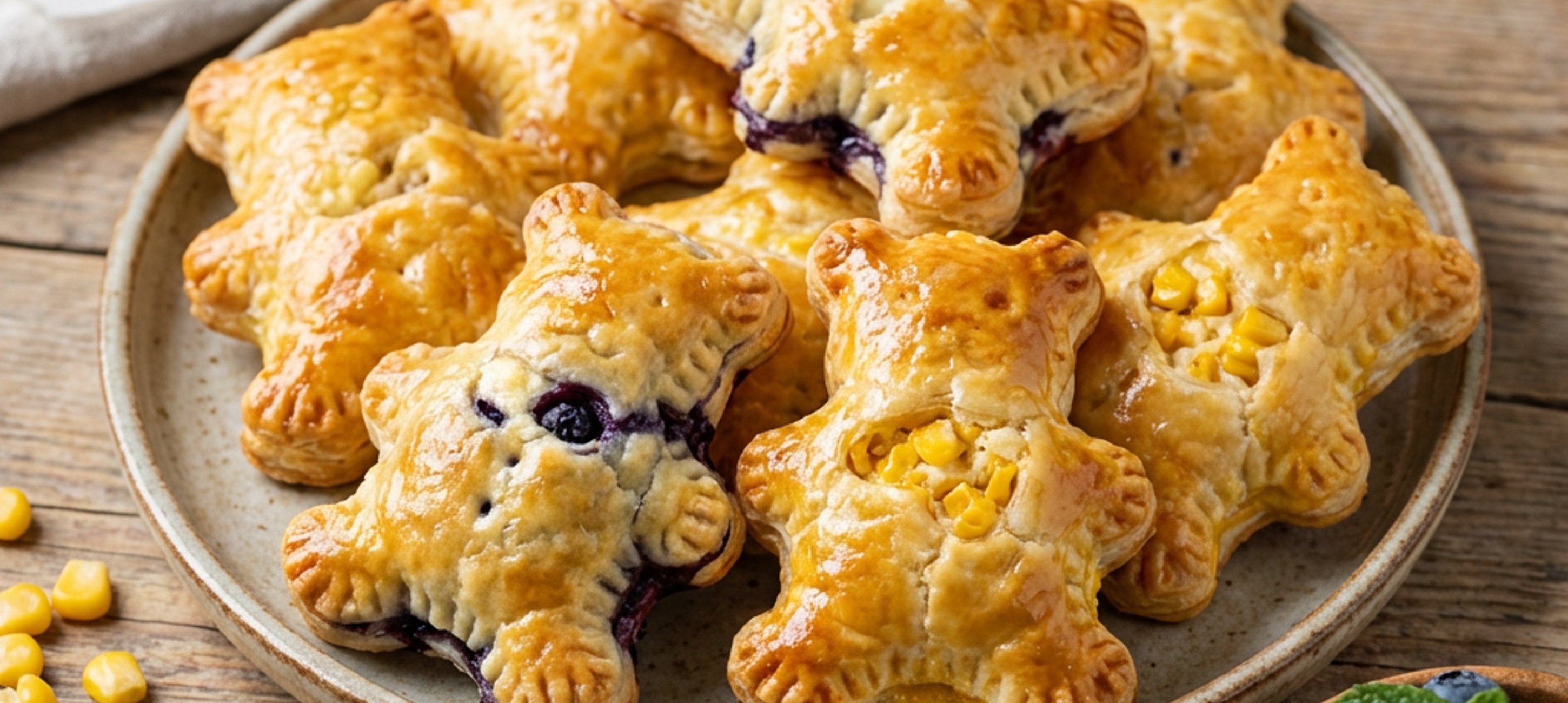- 1Listové těsto vyválíme na 3 mm silně a větším vykrajovátkem z něj vytlačíme 20 stejných tvarů (Chcete-li jim dát zábavný tvar, použijte například vykrajovátko ve tvaru medvěda stejně jako my. Skvělé je ale i srdce či hvězdičky. Pokud nebudete kapsičky používat pro děti, můžete celé těsto rozkrájet na pravidelné čtverce, díky čemuž předejdete zbytkům.).