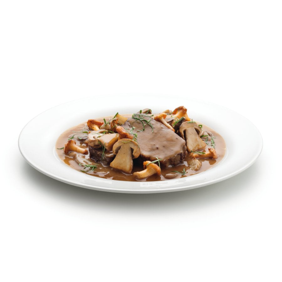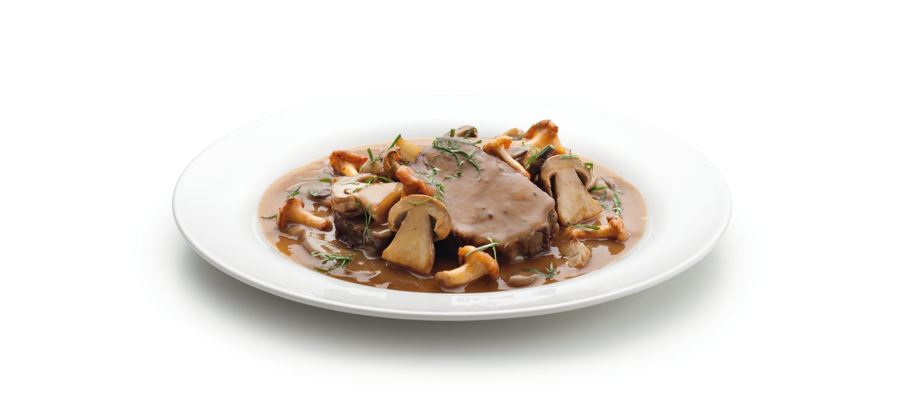- 4Čerstvé houby očistíme, větší nakrájíme nahrubo, menší necháme vcelku. V nepřilnavé pánvi na vyšším ohni zpěníme 30 g másla a houby na něm zprudka orestujeme dozlatova. Stačí jen 2–3 minuty. Osolíme a opepříme a zhruba po 30 minutách dušení masa je přidáme k roštěnkám. Přilijeme zbytek vývaru, přiklopíme pokličkou a dusíme na velmi mírném ohni doměkka.