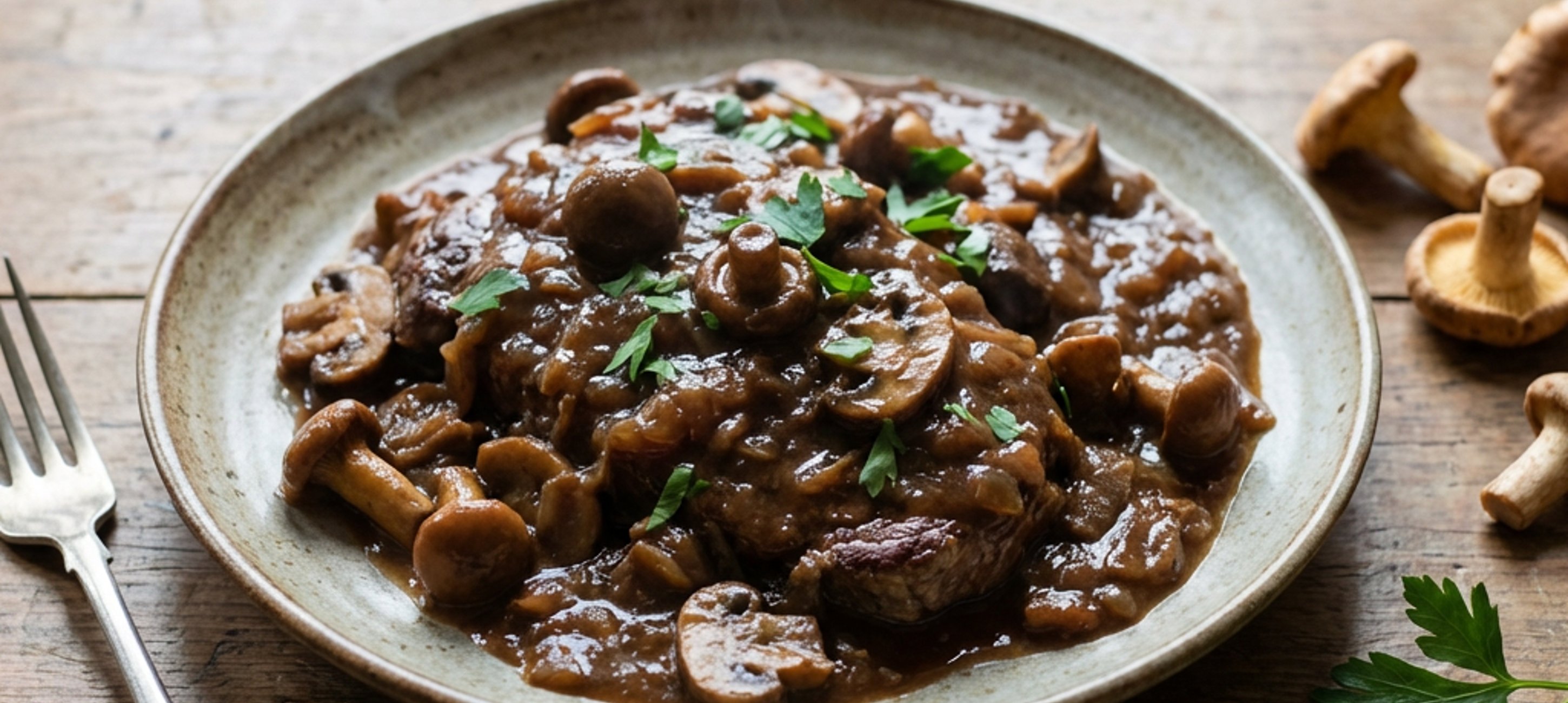 - 5Kastrol stáhneme z ohně a do omáčky vmícháme zbylé studené máslo. V případě potřeby dochutíme solí. Na talíři posypeme roštěnky nasekanou petrželí.