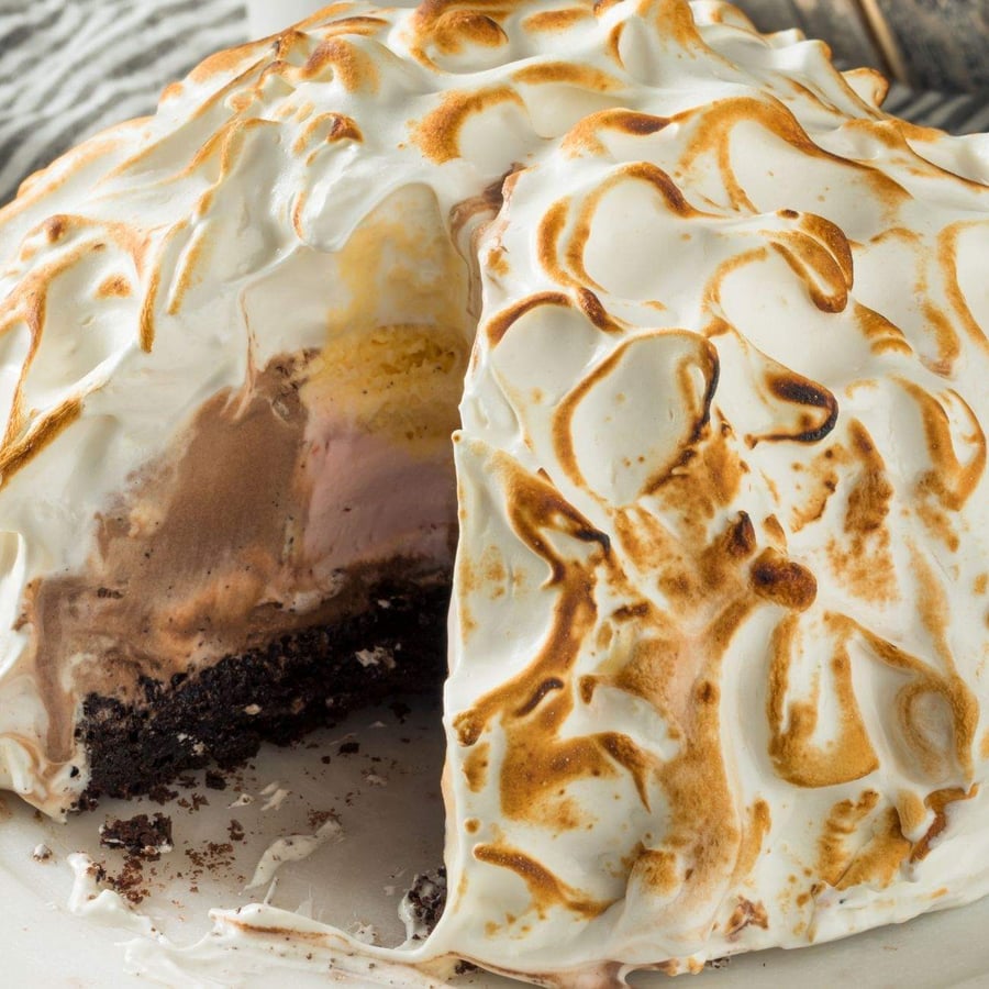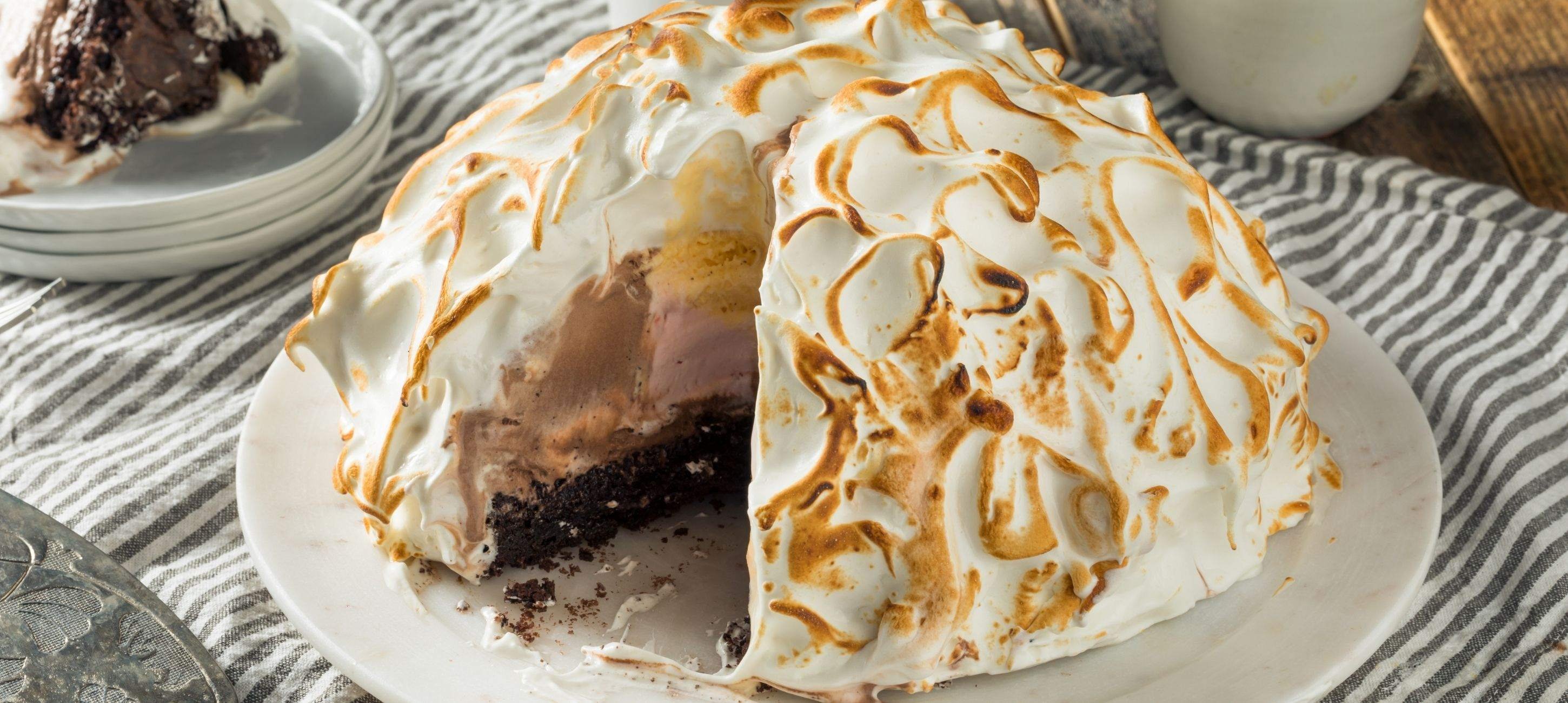 - 11Quickly scoop the meringue. Spread over the ice cream and the sides of the cake.