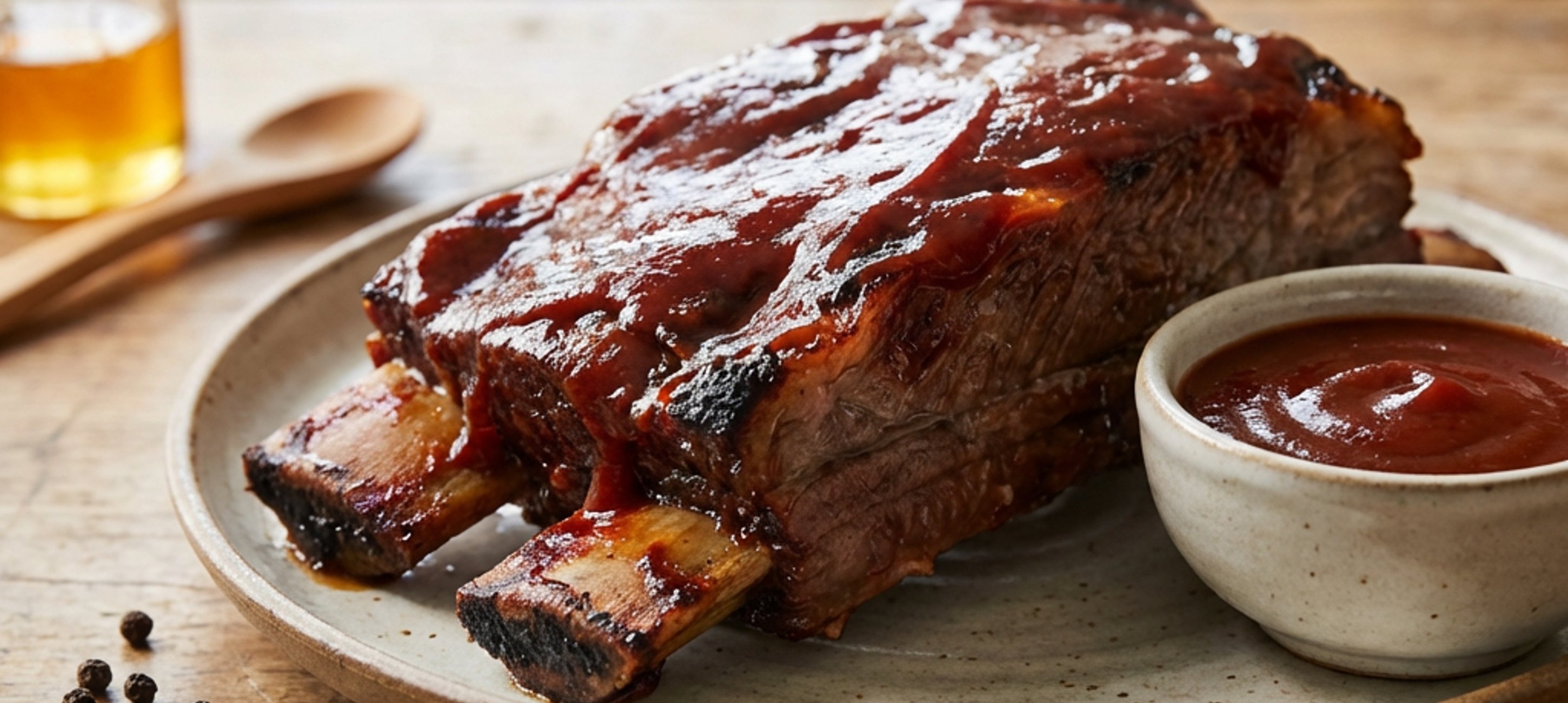 - 2Všechny suroviny na bbq omáčku smíchejte a potřete s ní žebra.
