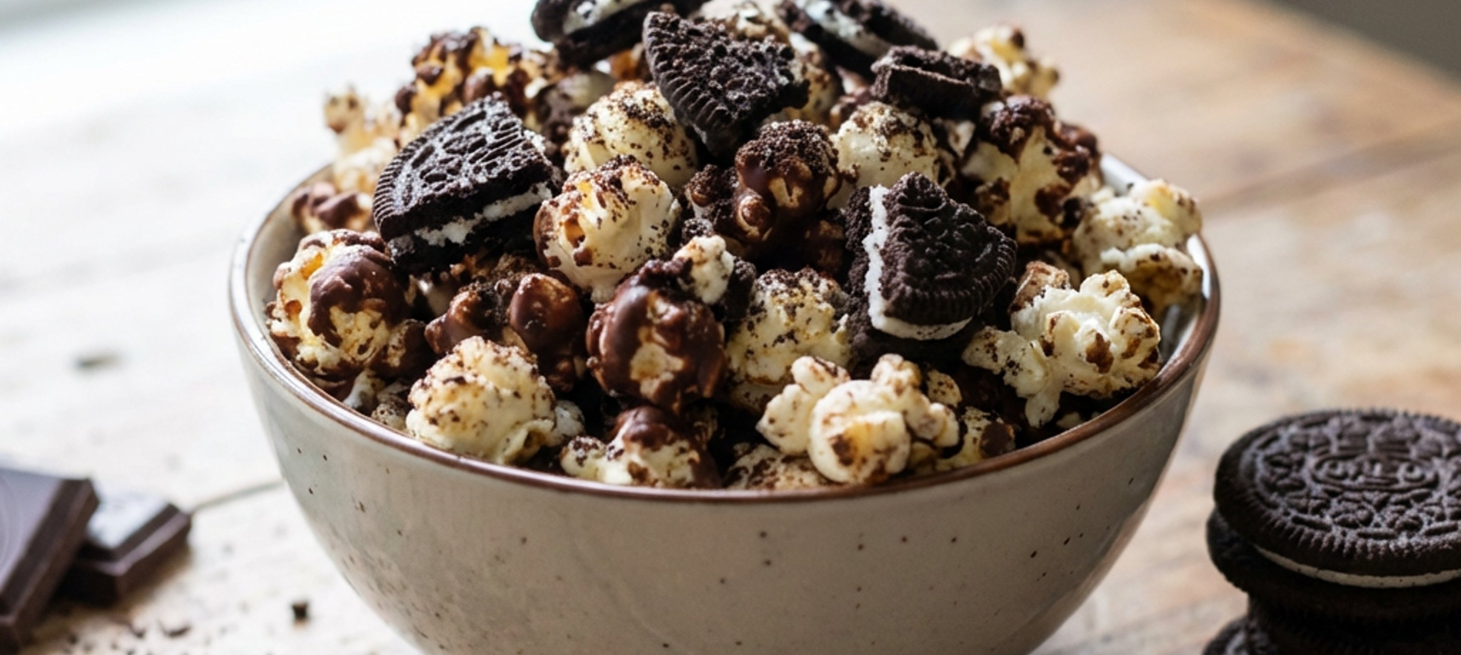 - 7Hotový popcorn nechte vychladnout, rozdělte jej do mističek a přidejte k němu ještě pokrájené kousíčky oreo sušenek.