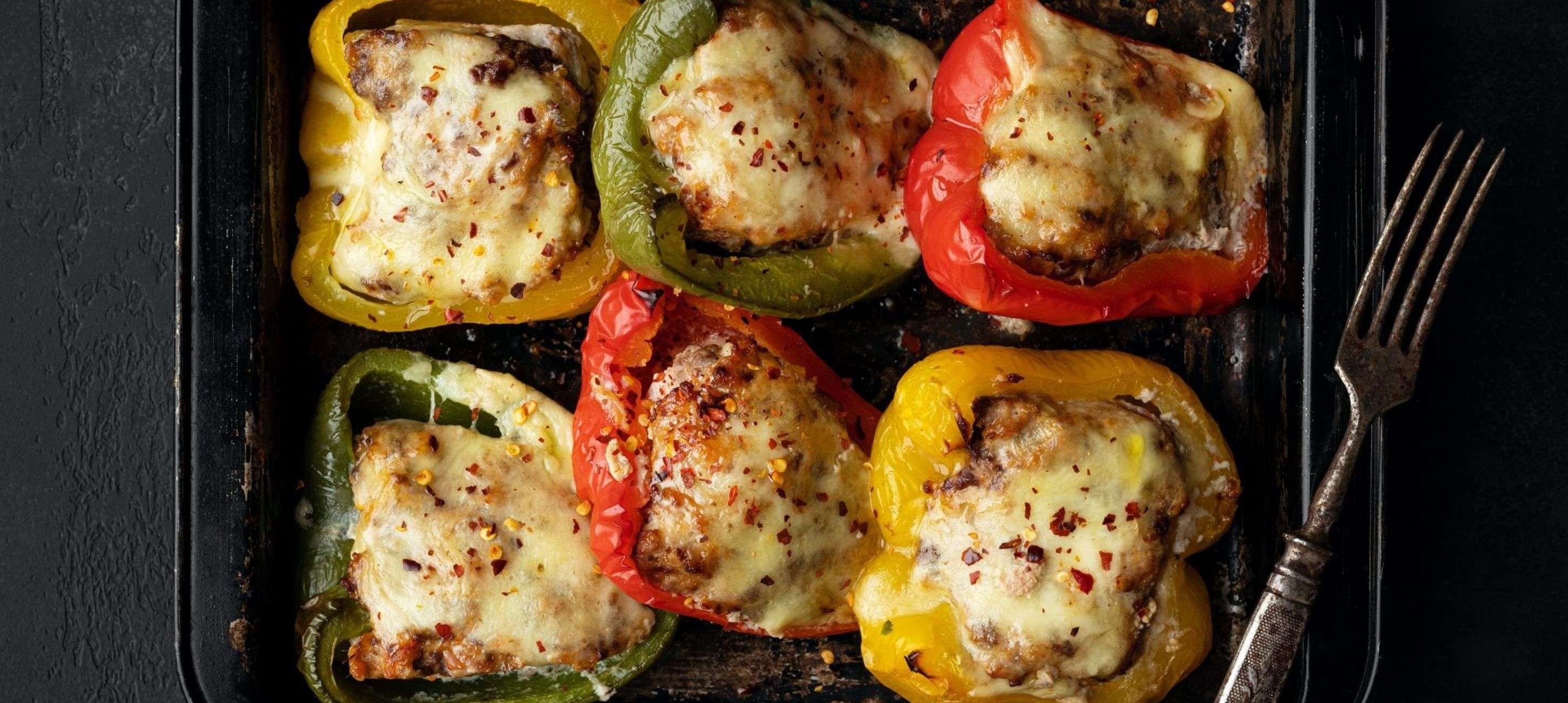 - 5Po uplynutí času papriky vytáhněte z trouby, posypte nahrubo nastrouhanou mozzarellou a následně je vraťte ještě na dalších 10 minut dopéct do trouby při 160 °C.