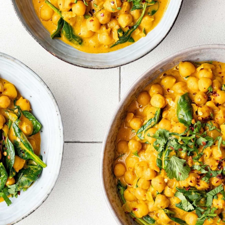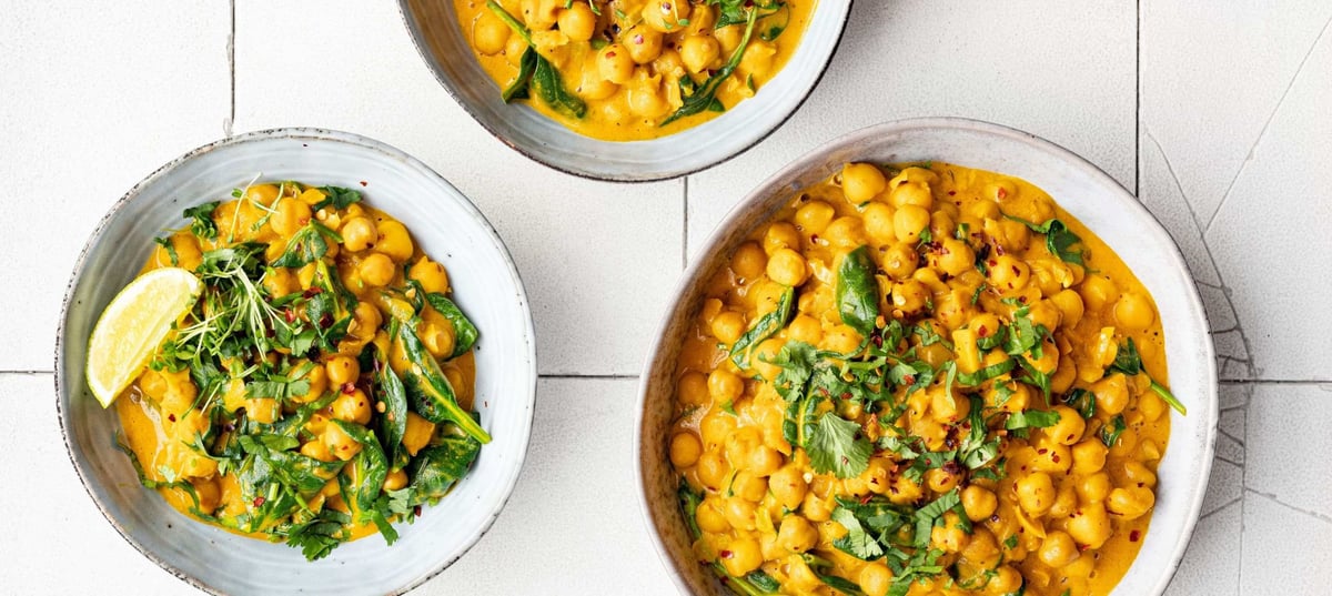 - 2Then drain the chickpeas and add them to the pot, pour in the coconut milk, season with salt and pepper, and cook for another 9–10 minutes over medium heat until the mixture thickens.