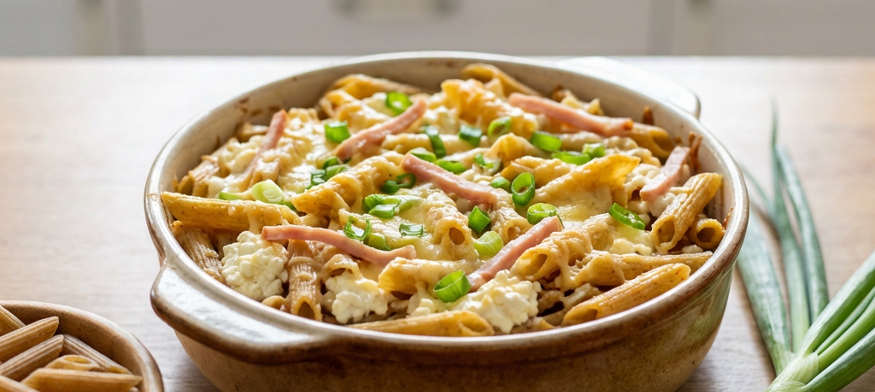 - 8Hotové zapečené těstoviny rozdělte do 4 talířů a podávejte.