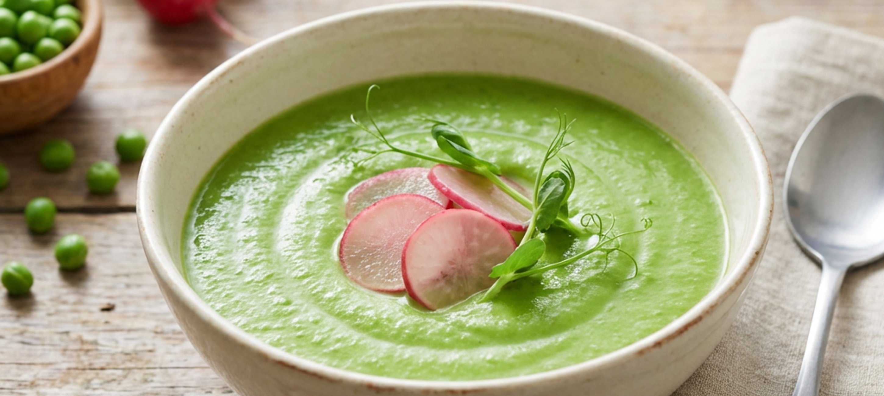 - 2Poté přidáme hrášek – necháme rozpustit, vaříme maximálně 2 minutky – nechceme přijít o krásnou zelenou barvu hrášku.