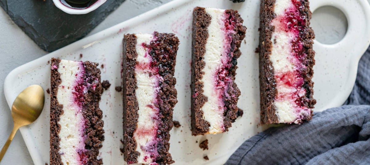 - 1Preheat the oven to 180 ˚C top and bottom heat. Line the bottom of a rectangular pan with baking paper, grease the sides with butter. Lightly press two-thirds of the crumble into the bottom of the pan. Spread the cream cheese mixture over the dough and smooth it out, top with frozen and fresh fruit (you can lightly press it into the cream cheese). Layer the remaining crumble on top.