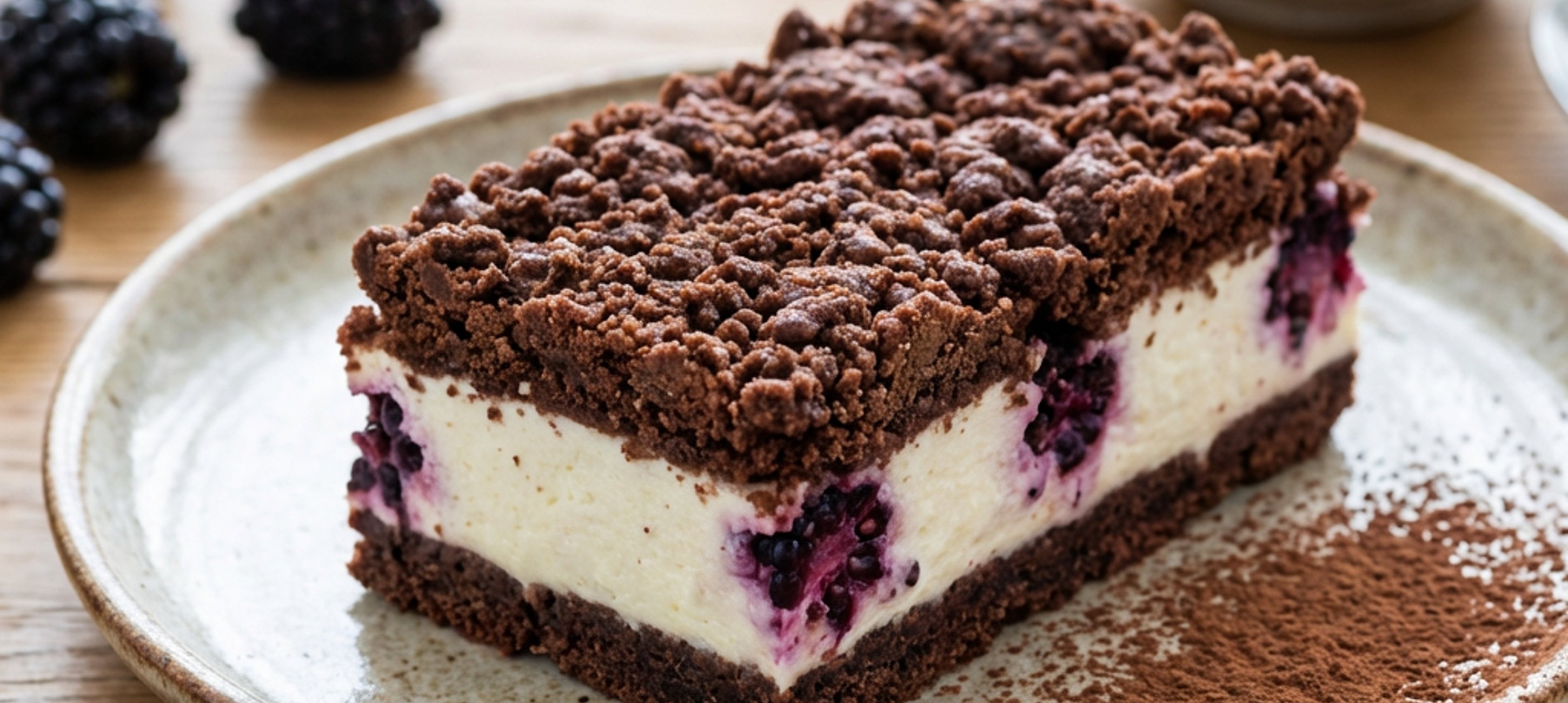 - 1Troubu předehřejte na 180 ˚C horní dolní ohřev. Dno hranaté formy vyložte pečicím papírem, boky vymažte máslem. Dvě třetiny drobenky lehce vmačkejte na dno formy. Na těsto naneste tvarohovou směs a uhlaďte, poklaďte mraženým i čerstvým ovocem (můžete lehce vtlačit do tvarohu). Navrch navrstvěte zbytek drobenky.