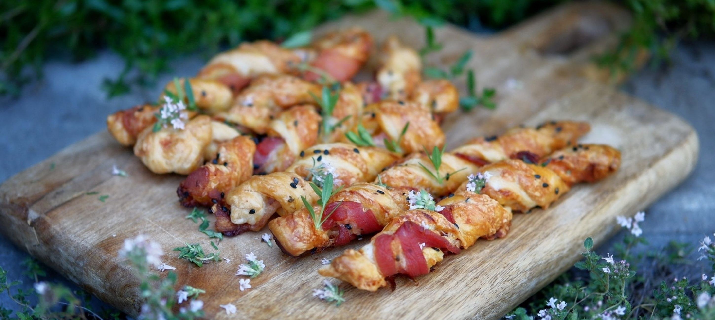 - 6Twist each strip into a spiral and place on a baking sheet lined with baking paper. Leave enough space around the sticks. Bake for 30 - 35 minutes until crispy.