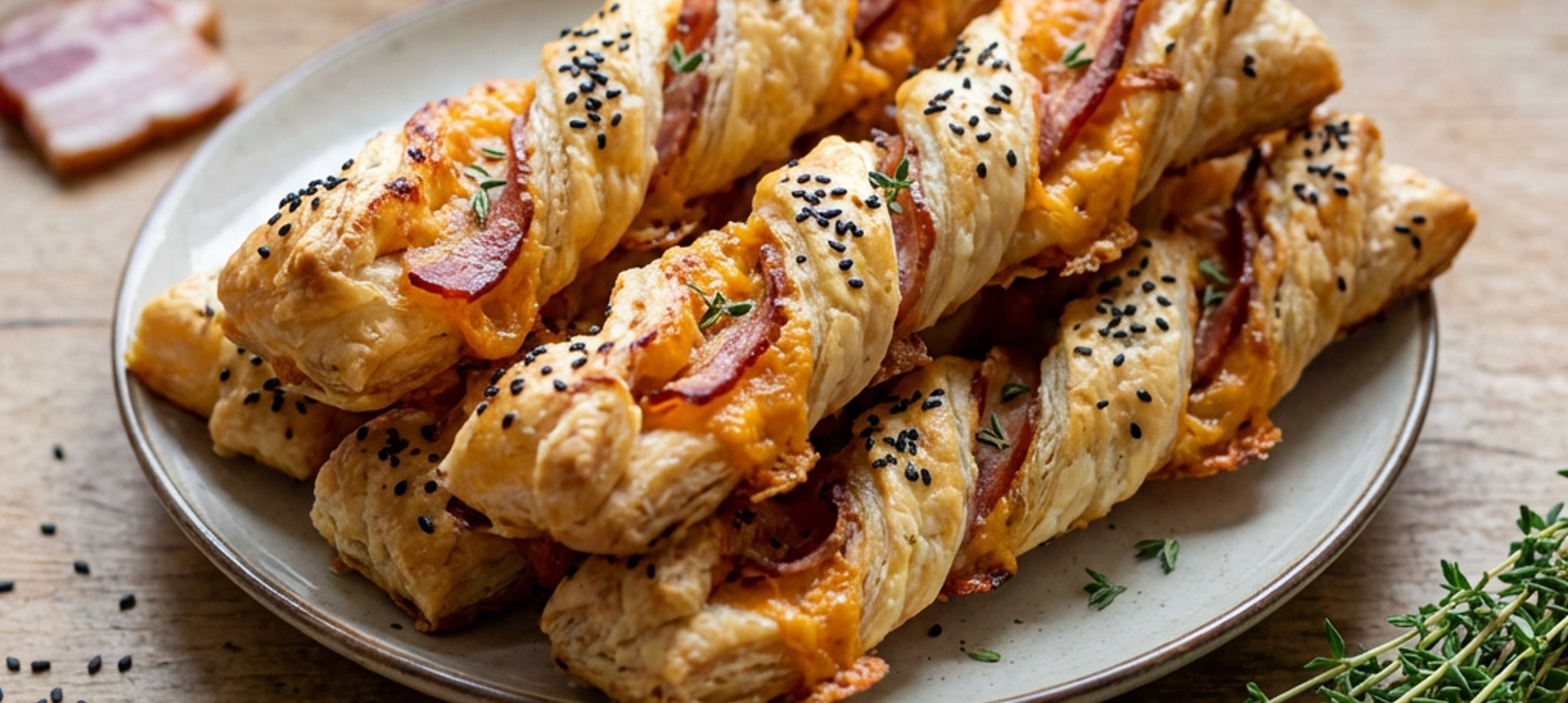 - 4Každý plátek slaniny podélné rozpůlíme. Na každý plátek položíme slaninu, pruh těsta včetně slaniny přiklopíme oběma konci k sobě tak, aby potřená část se slaninou byla zvenčí.