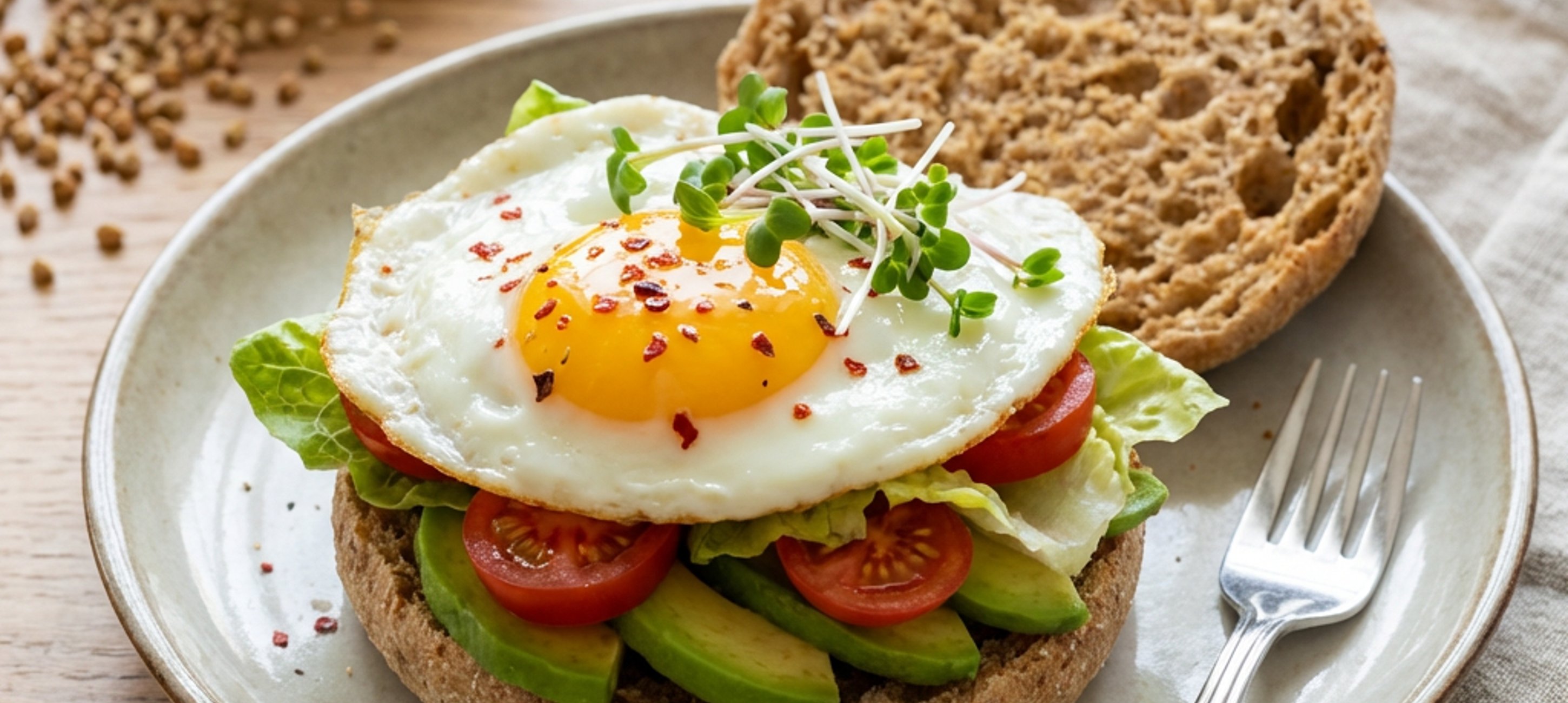 - 2Muffin rozkrojíme, opečeme z obou stran nasucho nebo na trošce másla. Do muffinu navrstvíme salát, rajčata, avokádo posolené, opepřené a pokapané limetovou šťávou, nahoru vajíčko, trošku klíčků a pochutnáme si na super třeba snídani.