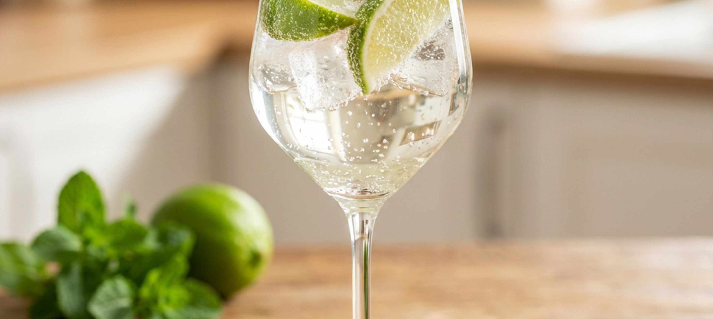 - 3Na závěr ozdobte plátky limetky a lístky máty.