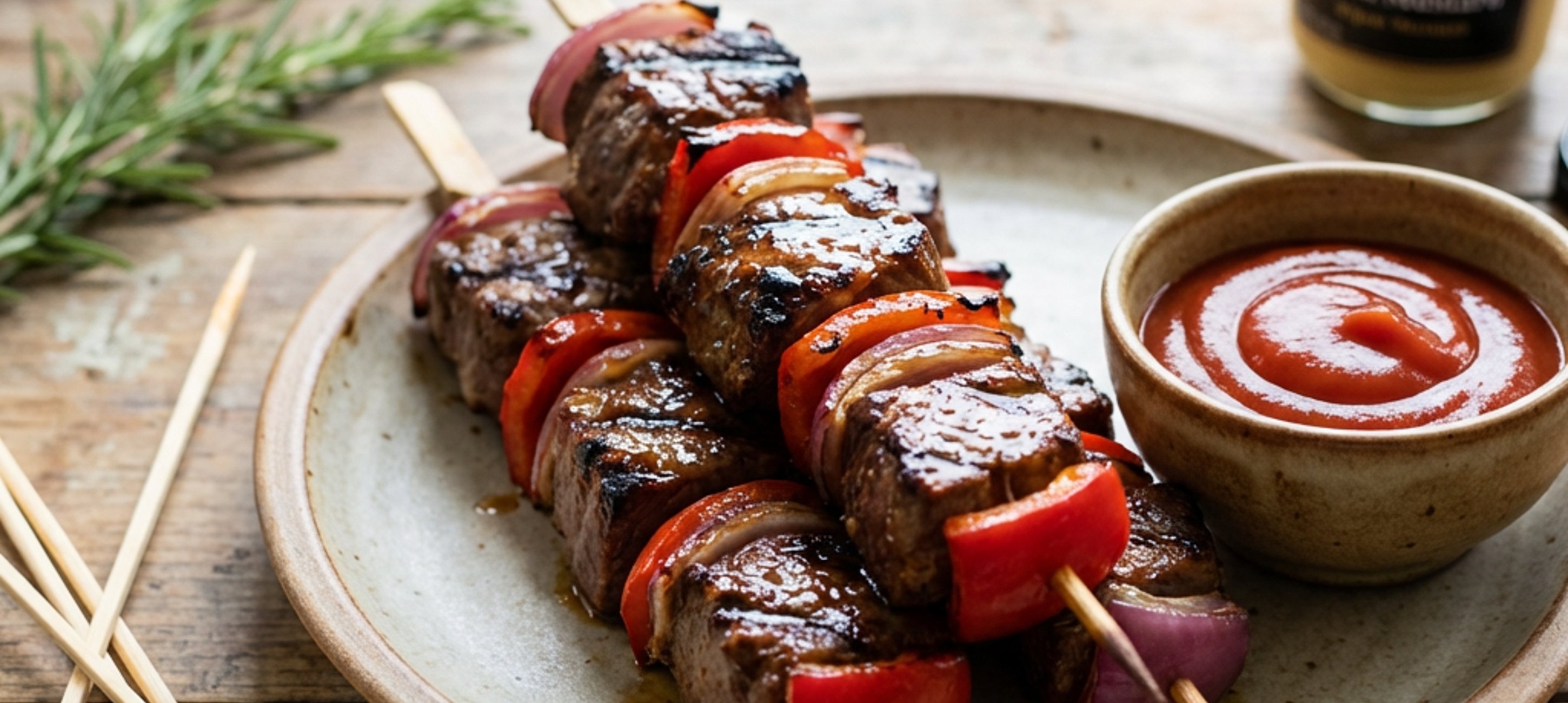 - 2Když jste připraveni grilovat, zahřejte gril nebo grilovací pánev, dokud nebude rozpálená a pokapejte připravenou zeleninu olejem. Marinované maso navlékněte na špejle střídavě s kousky zeleniny.