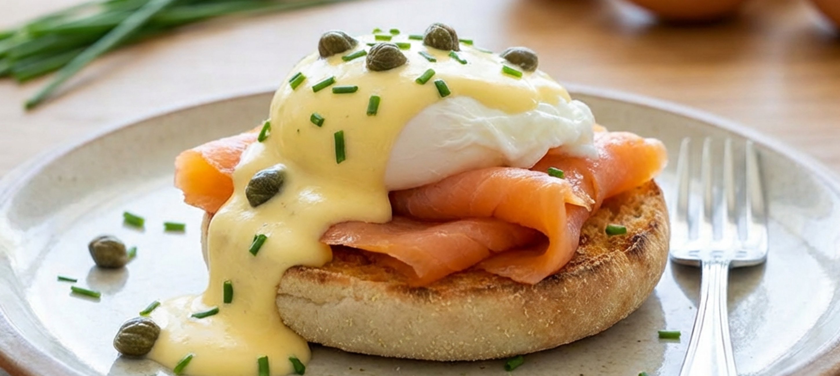 - 4Poté na uzeného lososa dáme ztracené vejce a zalijeme holandskou omáčkou.