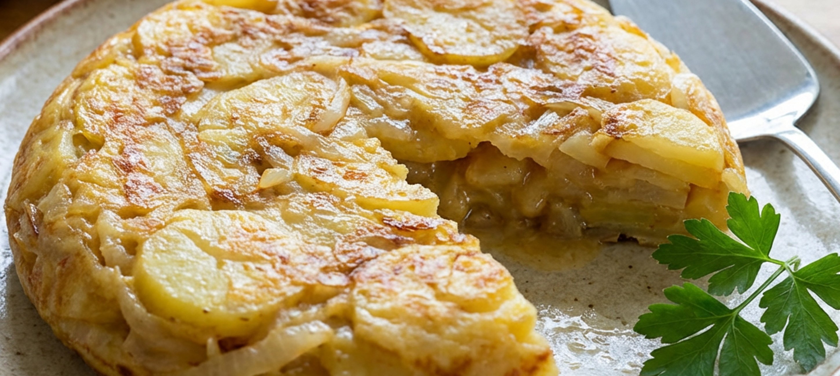 - 3Na nepřilnavou pánev nalijeme lžíci oleje. Jakmile je dostatečně rozehřátá vlijeme do pánve směs a opékáme 4 minuty. Poté na pánev přiklopíme talířem, pánví otočíme vzhůru nohama a tím tortillu vyklopíme. Opatrně tortillu vrátíme zpět do pánve, abychom opekli druhou stranu. Doba propékání závisí na výšce tortilly, v receptu je použita pánev s průměrem 22 cm. Tortilla je hotová jakmile při zatlačení lehce pruží, pokud je již zcela tuhá, hrozí, že bude vysušená.