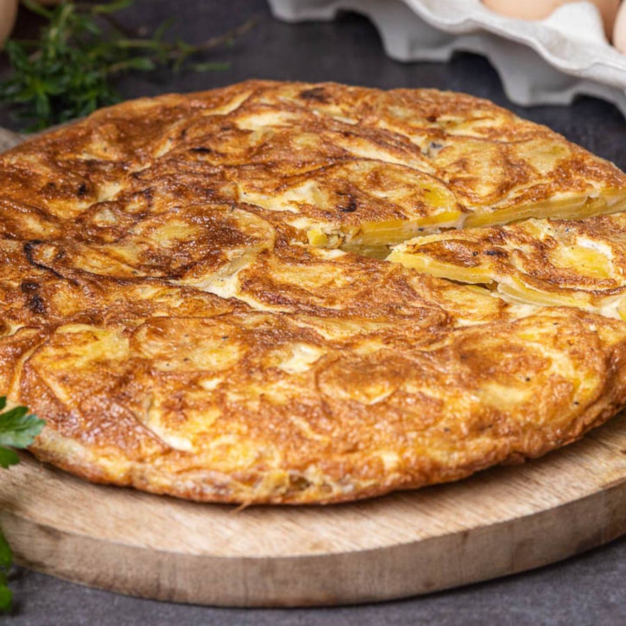 - 3Pour a tablespoon of oil into a non-stick pan. Once sufficiently heated, pour the mixture into the pan and cook for 4 minutes. Then cover the pan with a plate, flip the pan upside down to turn out the tortilla. Carefully return the tortilla to the pan to cook the other side. The cooking time depends on the height of the tortilla; a pan with a diameter of 22 cm is used in the recipe. The tortilla is done when it slightly springs back when pressed; if it is completely firm, it risks being dry.