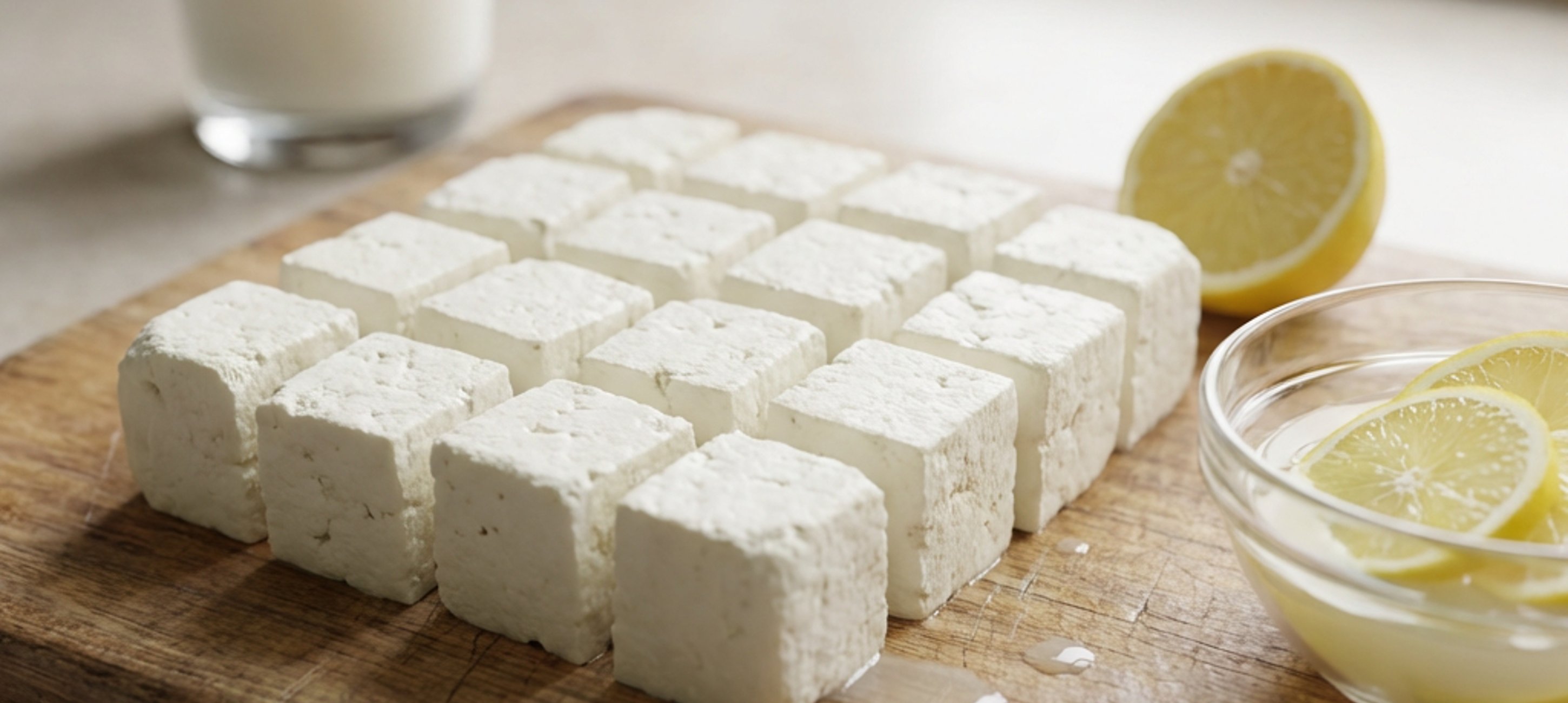 - 4Množství šťávy je závislé na tučnosti použitého mléka. Čím je mléko tučnější, tím více šťávy bude potřeba. Nejprve přidáme 2 lžíce šťávy. Mléko by se mělo okamžitě začít srážet.