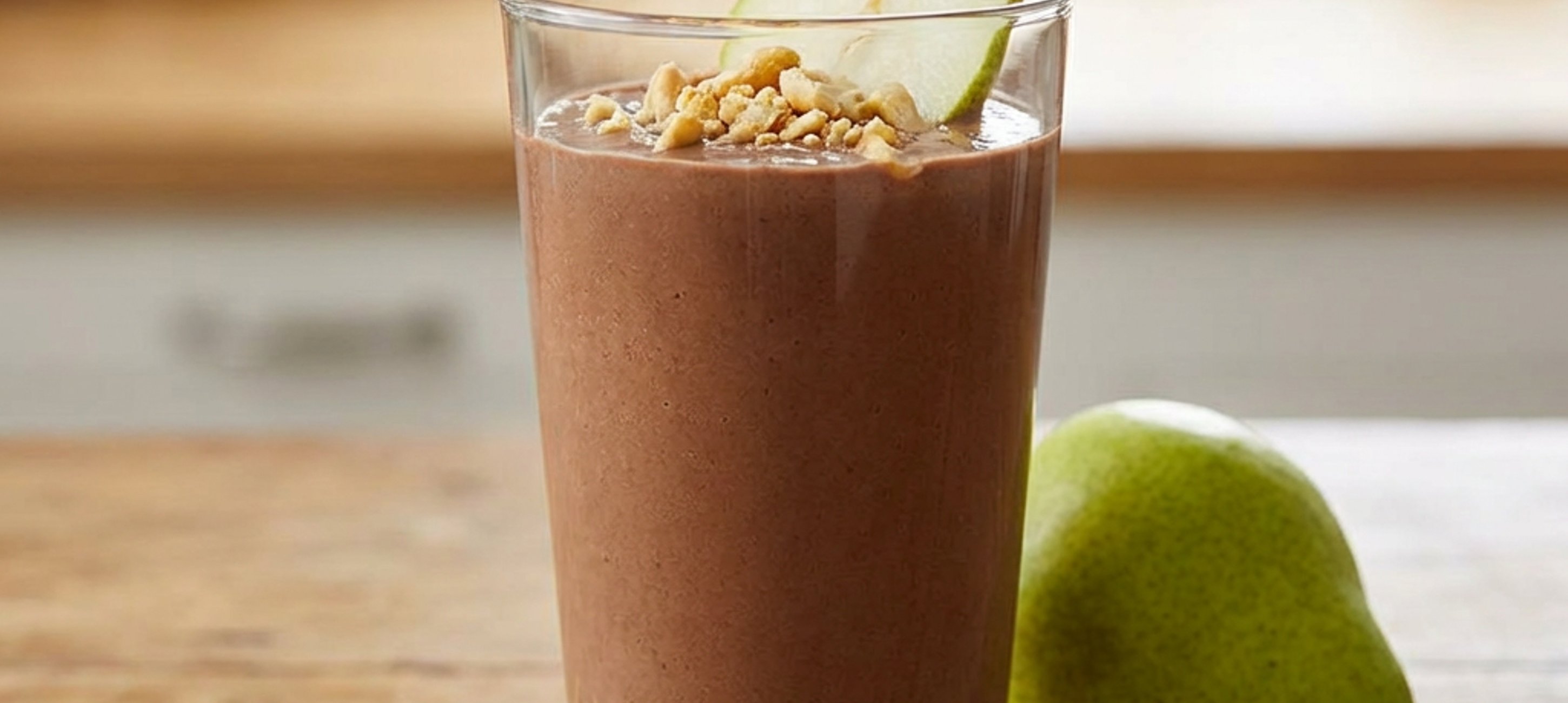 - 4Servírujte s plátkem hrušky a pár nadrcenými oříšky na ozdobu.