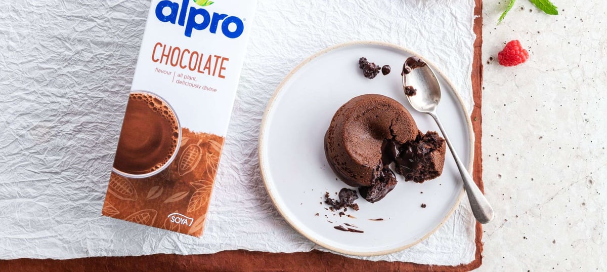 - 2Start with the dry ingredients (except for the salt). In a large bowl, mix together the flour, baking powder, and cocoa until the mixture is lump-free. Then add the Alpro drink, coconut oil, agave syrup, and salt, and blend until smooth.