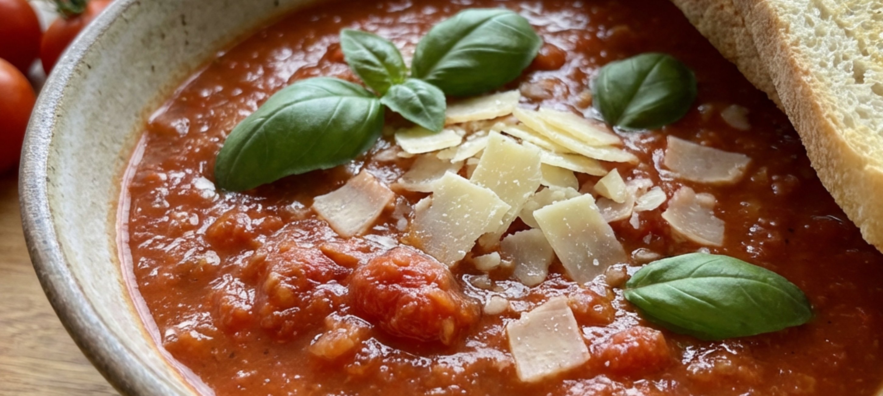 - 6Na 4 mm proužky nakrájenou bagetu rozprostřete po povrchu rajčat a přiklopte poklicí.