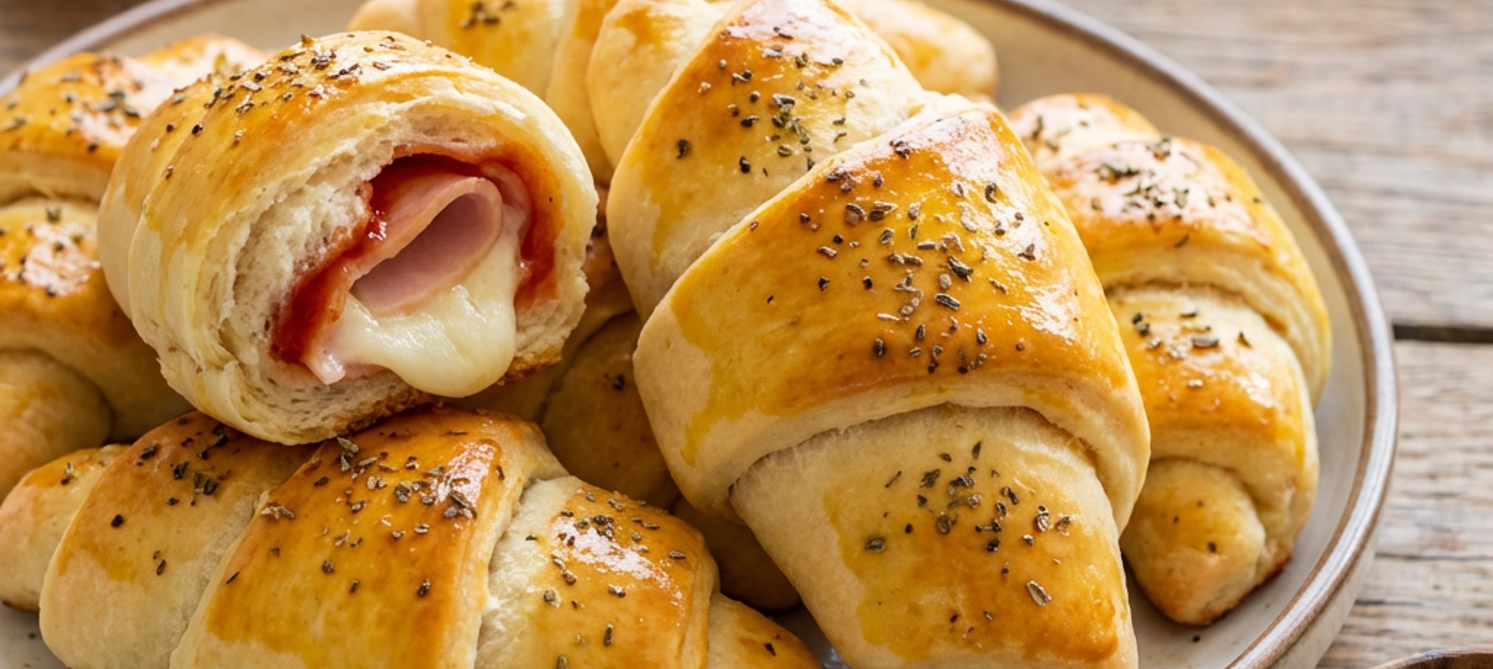 - 3Těsto rozdělte na 4 části. Z každé části vyválejte obdélník a rozdělte jej na 3 trojúhelníky. Jednotlivé trojúhelníky pomažte kečupem, přidejte sýr a šunku a zamotejte od širší strany trojúhelníku směrem k užší. Smotané rohlíčky položte špičatou částí těsta dolů, aby se při pečení neotevřely. Stejně postupujte se zbytkem těsta.