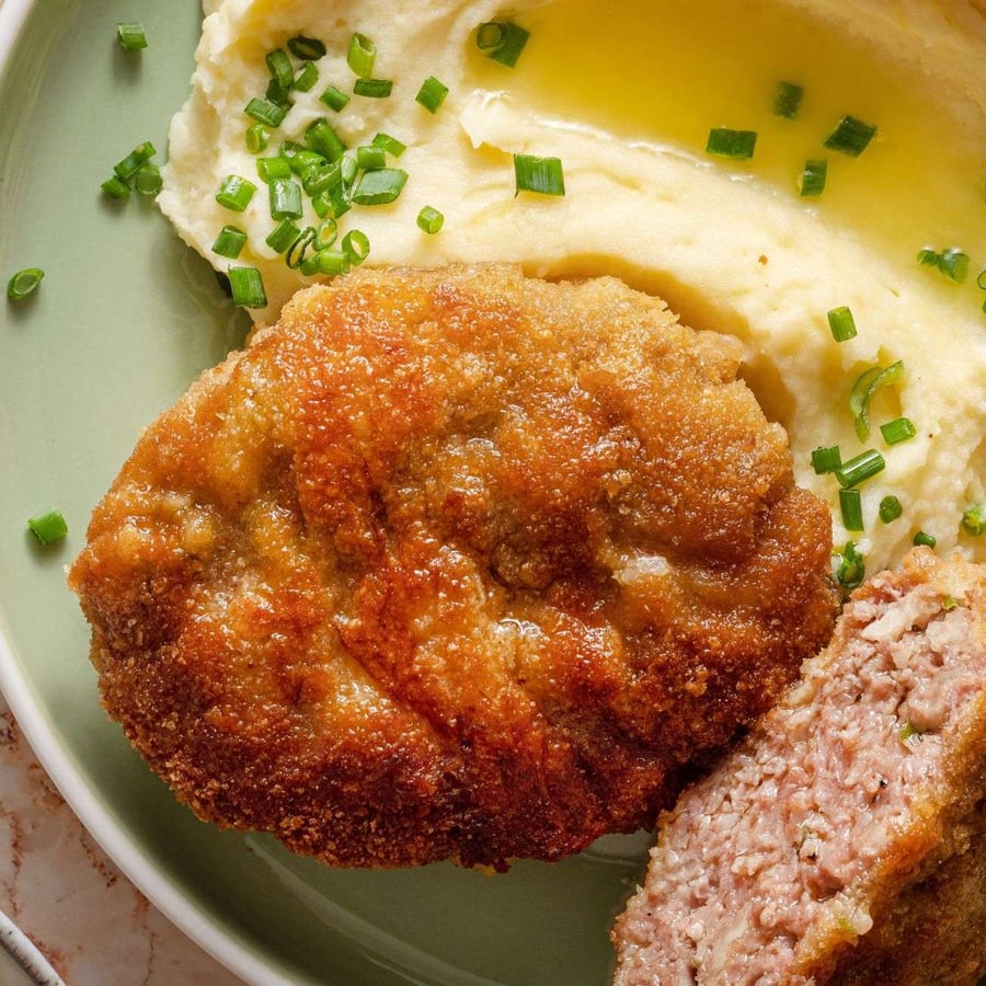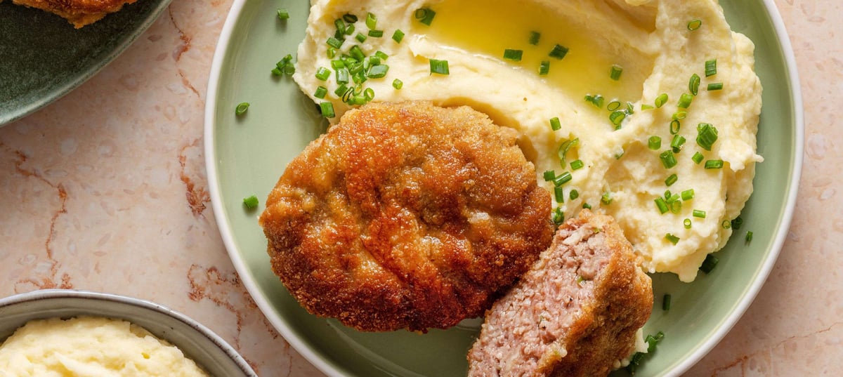 - 6After frying, serve the schnitzels with warm mashed potatoes.