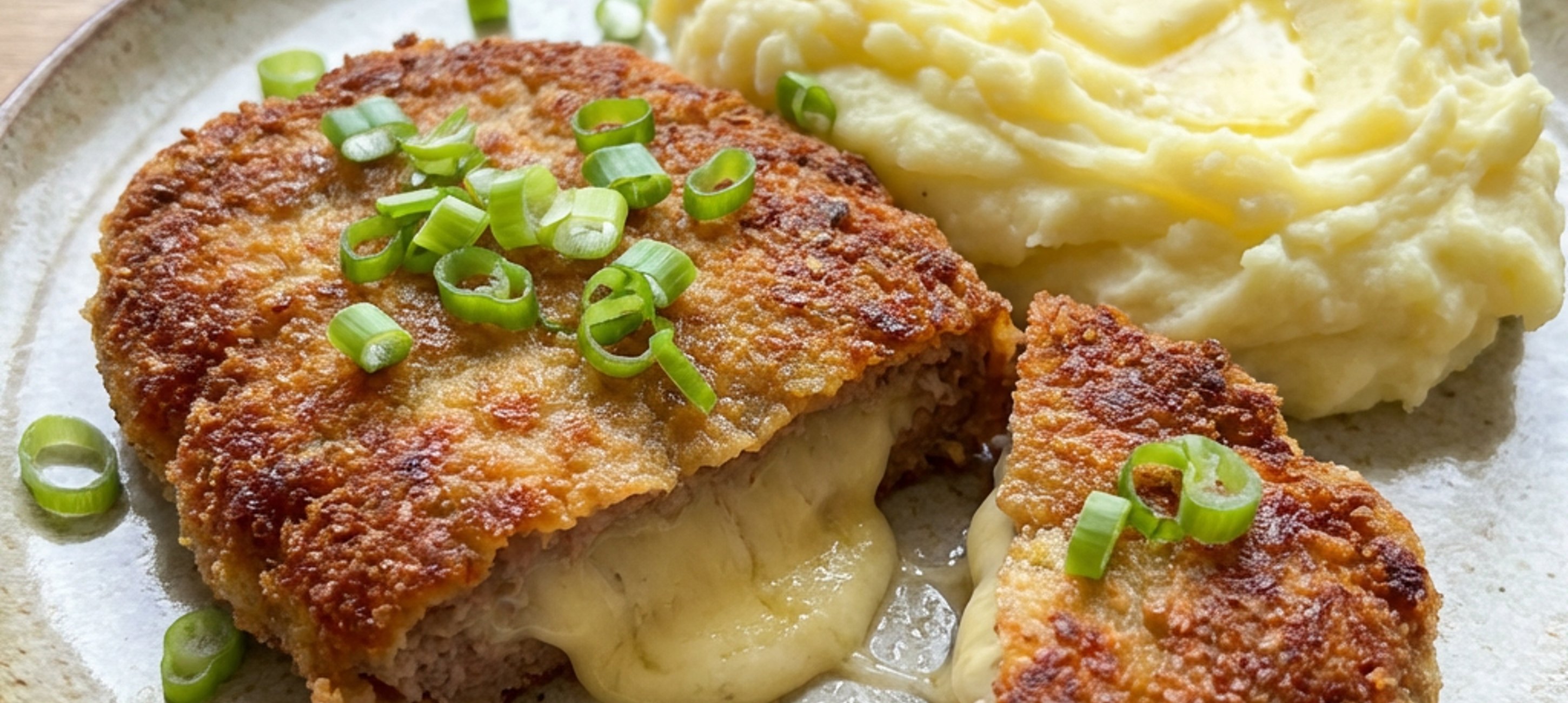 - 2Mezitím si připravte směs na řízky: Do větší mísy dejte mleté vepřové maso, najemno nastrouhanou goudu, jarní cibulku, muškátový oříšek, sůl a pepř a vše promíchejte. Z hotové masové směsi následně vytvořte oválné placky o hmotnosti 150 g. Každý ovál by měl být cca 1 cm vysoký.