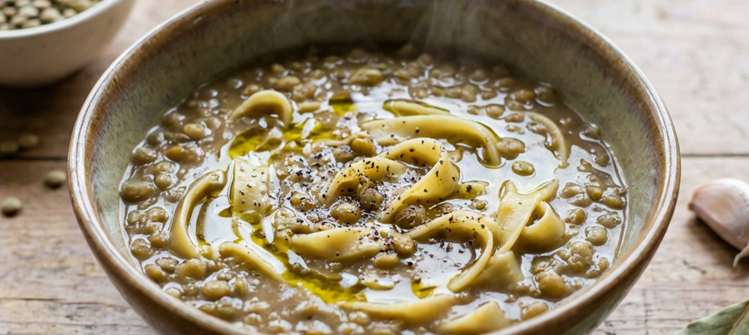 - 2V závěru vaření přidáme nudle, krátce povaříme a zakápneme olivovým olejem. Polévku v talíři pokapeme ještě olejem.