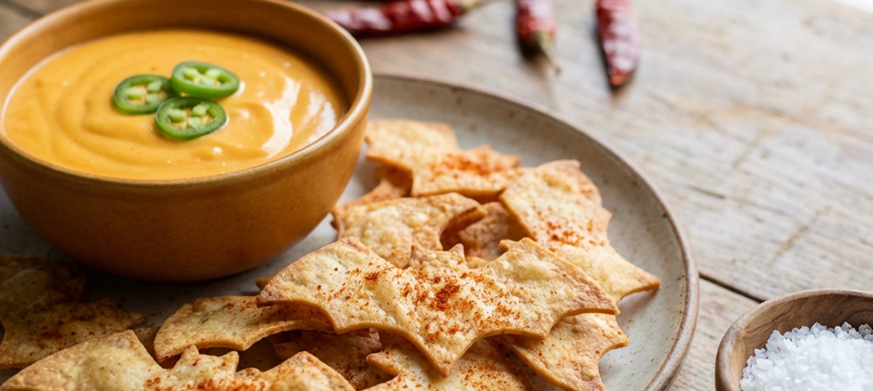 - 1Z tortill vykrájíme netopýry, nebo jiné halloweenské motivy. Vyskládáme na plech vyložený pečícím papírem, potřeme olejem, osolíme a posypeme mletou paprikou. Dáme péct na 180 stupňů cca na 15 - 20 minut dozlatova.