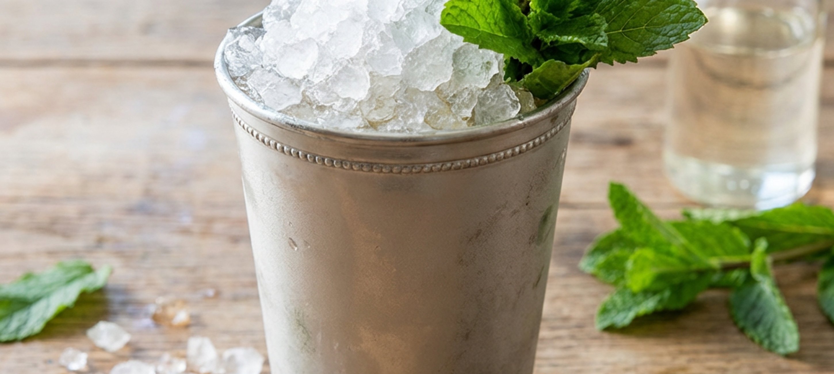 - 2Sklenici naplníme zhruba do půlky drceným ledem. Přidáme 4 cl cukrového sirupu, mátu a 6 cl bourbonu. Následně promícháme a ozdobíme mátou.
