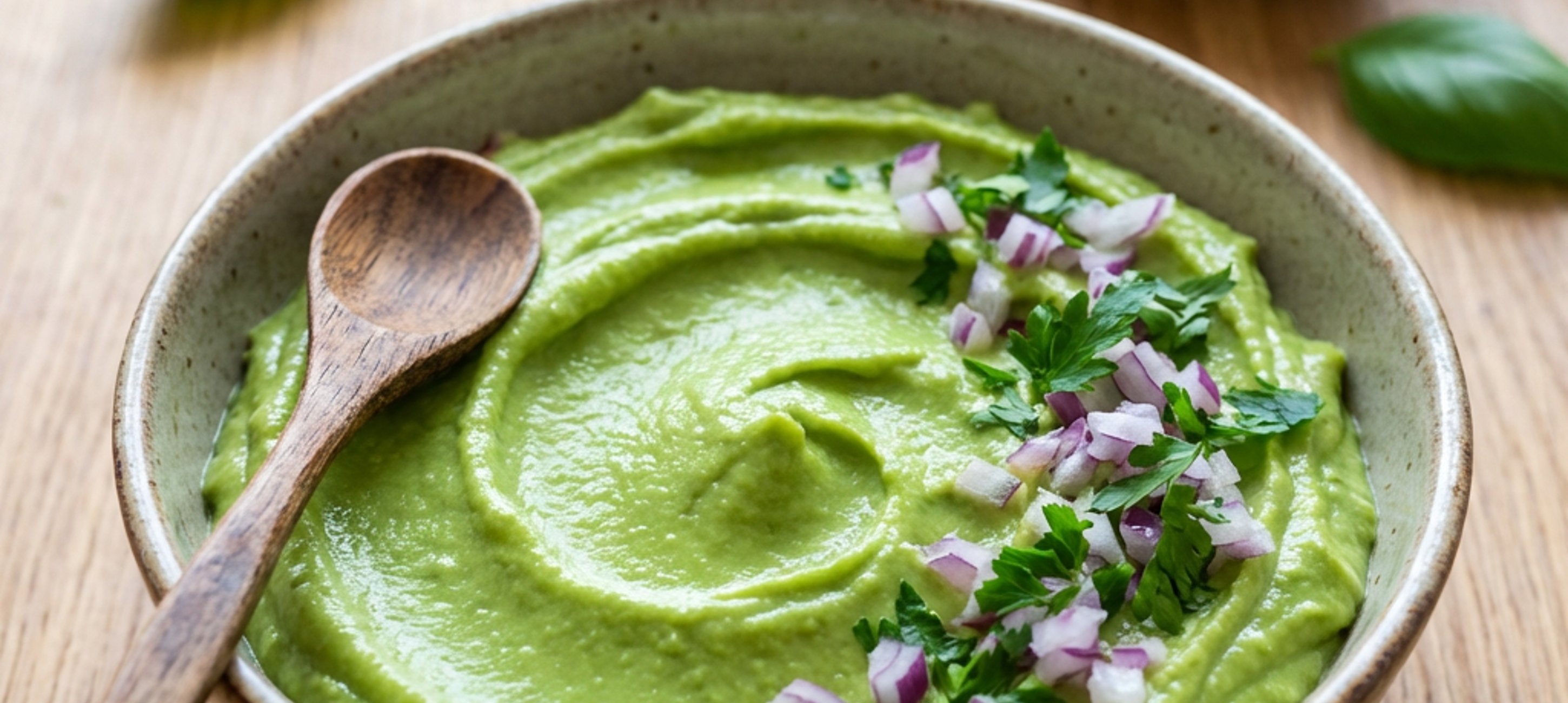 - 2Červenou cibuli oloupejte, nakrájejte najemno a přidejte k rozmixované avokádové směsi. Česnek oloupejte a propasírujte do nádoby k ostatním ingrediencím. Následně přidejte 1–2 lžíce citronové šťávy dle chuti a najemno nasekané bylinky.