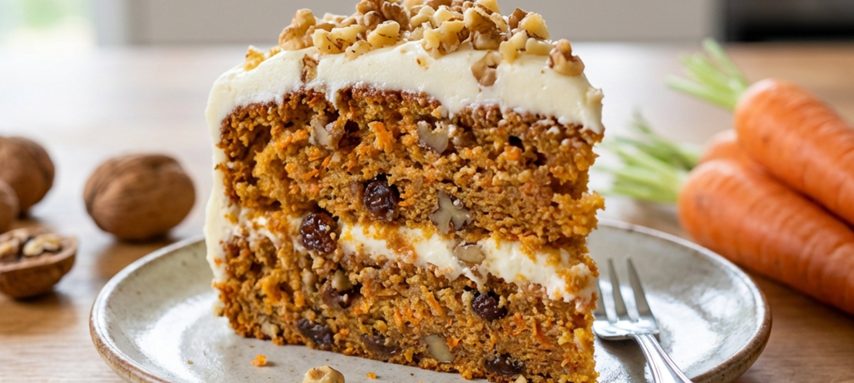 - 6Takto připravený mrkvový dort posypte nahrubo nasekanými vlašskými ořechy, nakrájejte na 10 porcí a podávejte.