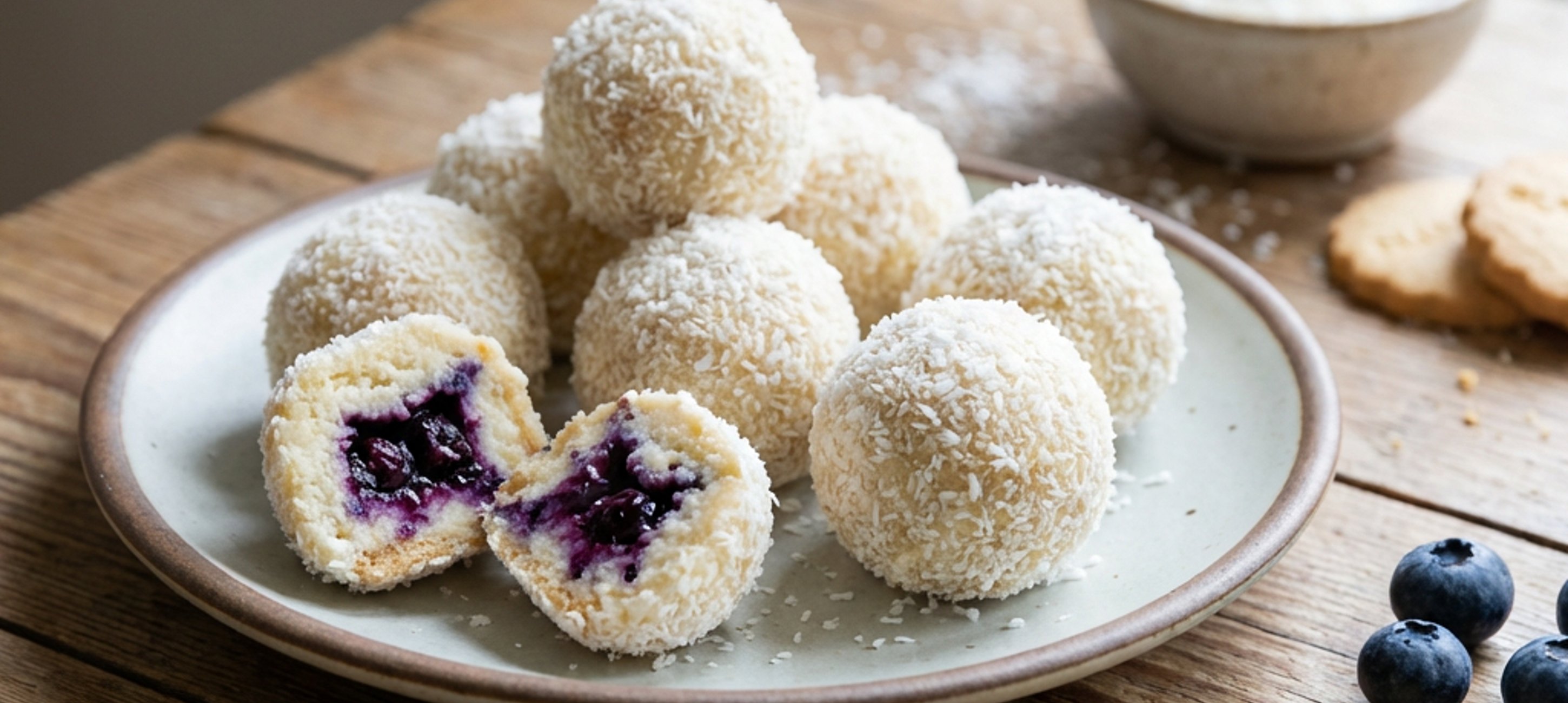 - 3Poté tvořte malé placičky, do kterých vložíte jednu borůvku či mraženou malinu. Opatrně "ukoulujte" a obalte ve strouhaném kokosu. Opět dejte minimálně na půl hodiny do lednice - ideálně v krabičce na potraviny.